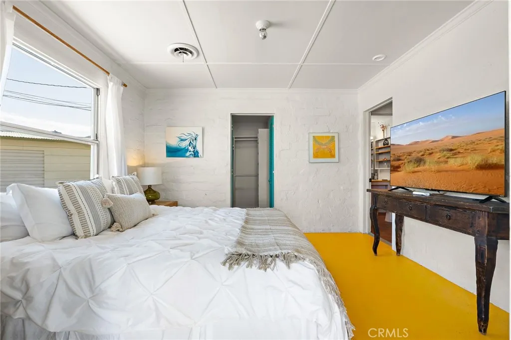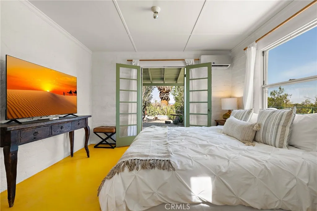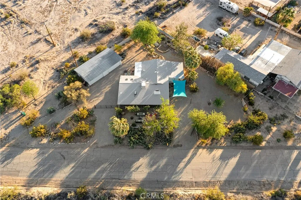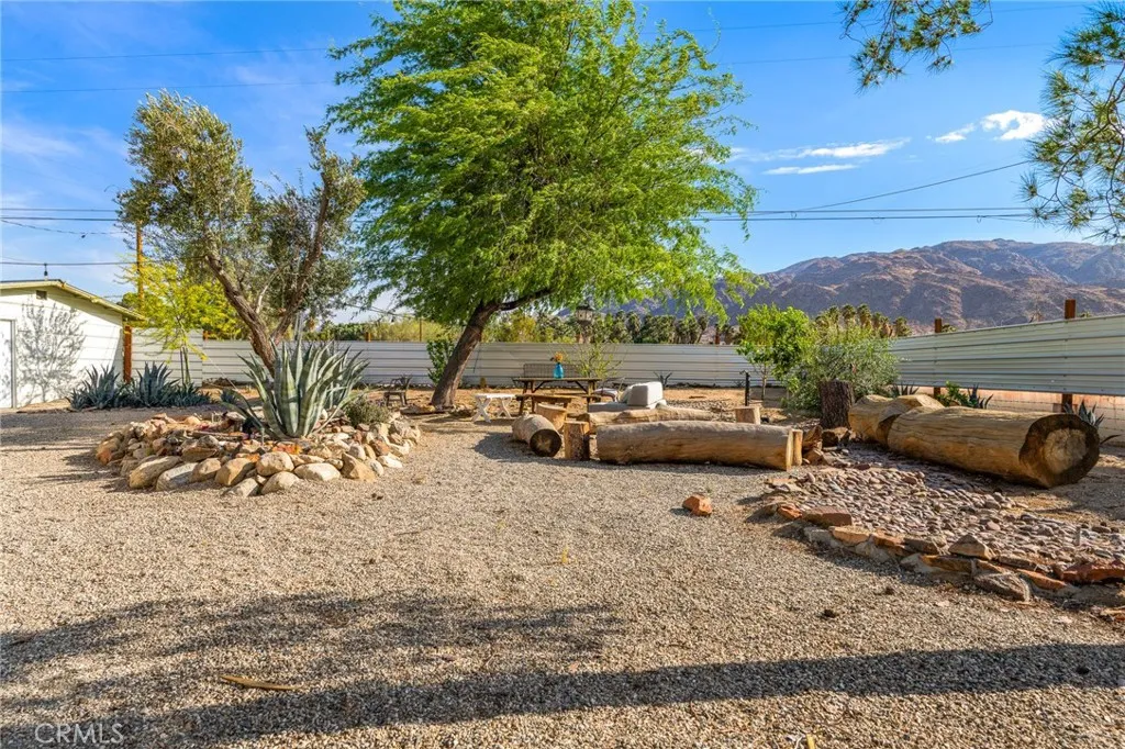 HISTORIC 1938 ADOBE: This architecturally significant property – featured in Historic Adobe Homes magazine – offers timeless desert appeal. Located within walking distance to the iconic 29 Palms Inn, Kitchen in the Desert and downtown Twentynine Palms, providing a rare opportunity to own an authentic adobe home in one of the town’s most desirable settings. Situated on a .51-acre triangular parcel uniquely positioned so the point of the lot faces directly toward the iconic Oasis of Mara, creating a setting that feels deeply connected to this remarkable natural landmark. Set against the mountains in a prime Twentynine Palms location, the property enjoys beautiful back views of the mature palm groves, with towering palms, mature trees, cactus gardens, and a peaceful breeze from the nearby natural spring pond adding to the sense of a true desert oasis. The home is surrounded by vacant lots on two sides, enhancing the sense of seclusion and making the parcel feel unusually expansive and private. This 3-bedroom, 2-bath home spans 1,491 square feet, with a layout that creates an easy connection to the outdoors, as most rooms have direct access outside, blending indoor and outdoor living. Recent improvements include new windows, a new water heater, a new kitchen counter, and new ductless mini-split heating/cooling system for efficient year-round comfort. The home also features a wood-burning fireplace for ambiance, a front porch facing open desert vistas and lush gardens for morning or evening beverages, in addition to an outdoor shower, private backyard, 4-car garage, and a 220V hookup ready for a future hot tub.