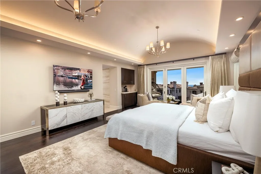 Achieving the pinnacle of luxury is no easy feat, yet it comes naturally at this gorgeous custom estate behind the guarded gates and fountains of Dana Point’s beachfront Ritz Cove collection. Completely remodeled to include today’s most sought-after appointments, finishes and fixtures, the multi-level villa reveals postcard-perfect sunset, Catalina Island, and whitewater Pacific Ocean views that enrich indoor and outdoor living areas. From a rooftop deck, where entertaining is complemented by a built-in BBQ bar with ice maker and Hestan refrigerator, panoramic views embrace southern Orange County’s rolling hills, dramatic coastline and shimmering evening lights. Natural light illuminates interior spaces as well, including a phenomenal rotunda-style foyer with double-height ceiling, sparkling chandelier, clerestory windows and a circular staircase leading to upper and lower floors. A formal living room displays an elegant fireplace and French doors opening to a front terrace, and limestone and wood floors are featured throughout. Memorable moments with friends and family are destined to be shared in the great room, where French doors lead to the backyard, a linear fireplace is framed by exotic stone, and a wet bar features a double-waterfall island, open shelving, an ice maker and under-counter Sub-Zero refrigerator. A few steps above the great room, the dining room flows effortlessly to an open kitchen with massive island, circular breakfast nook and 328-bottle wine wall. Premium appliances include a Wolf range with pot filler, cabinet-matched Sub-Zero refrigerator, two Miele dishwashers, and a built-in Miele coffee station. Generously proportioned at approximately 7,800 square feet, the sublime residence hosts an elevator to all levels, four ensuite bedrooms including one on the main level, five- and one-half baths, and a fireplace-warmed executive office with wood paneling and coffered ceiling. The lower level reveals a subterranean garage for five or six vehicles, a gym with built-in refrigerator, and a circular bonus room that is perfect as a media lounge, wine room or massage studio. Upstairs, the primary suite rivals the neighboring Ritz-Carlton resort, offering a barrel ceiling, bar, two balconies, and a boutique-style walk-in closet. Limestone walls and surrounds enhance the bath, which boasts a freestanding tub, dual-access rain shower, two sinks and a domed ceiling. Outdoors, a brand-new pool and spa with Baja shelf are featured in the backyard.