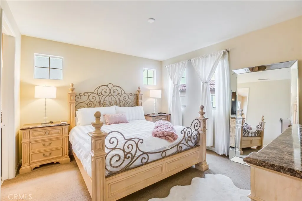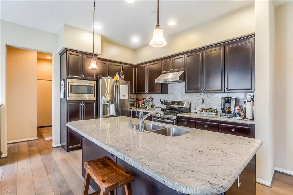 Luxurious two-level townhome located in the desirable private guard-gated community of Seville at Aldea in Porter Ranch. Built in 2014, this home features 4 bedrooms and 3 bathrooms, including a convenient bedroom and full bath on the first level. The open-concept floor plan offers a spacious family room and dining area with wood flooring and a gourmet kitchen featuring a large center island, granite countertops with full backsplash, and stainless-steel appliances including range/oven, microwave, dishwasher, trash compactor, and refrigerator (included in lease). The second level offers a spacious primary suite with walk-in closet and custom built-ins, and an ensuite bathroom with soaking tub, separate shower, and dual sinks. Two additional bedrooms, another full bathroom with dual sinks, and a dedicated laundry room also located upstairs. . Additional highlights include a private patio ideal for entertaining, and a two-car direct access garage equipped with an electric vehicle charger. Community amenities include a resort-style pool and spa, outdoor BBQ area with seating and TVs, fireplace lounge, playground, and wading pool. Conveniently located near the 118 Freeway, shopping, dining, and entertainment at The Vineyards at Porter Ranch, and close to Porter Ranch Community Park. Located within the Porter Ranch Community School district (per LAUSD; tenant to verify school districts & enrollment availability). You’re cordially invited to call Seville at Aldea your new home!