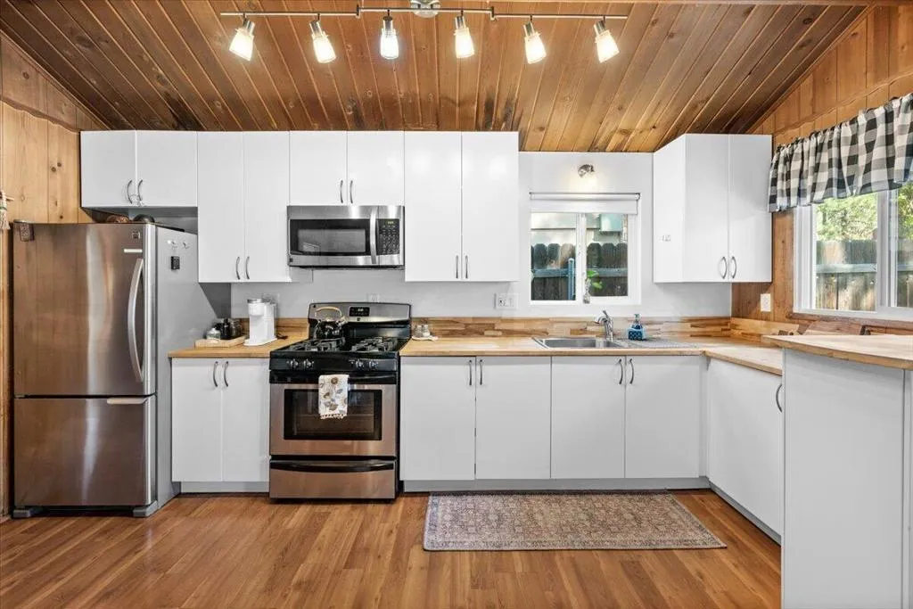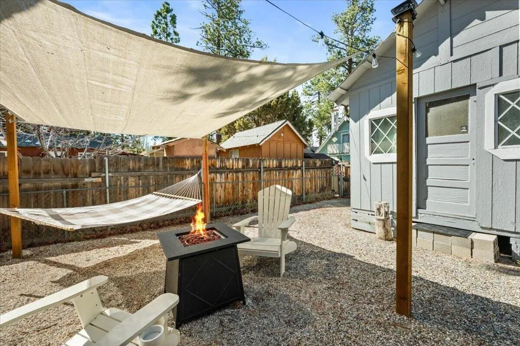 Tucked away in Big Bear, this charming and thoughtfully updated cabin offers a warm, inviting retreat where comfort meets mountain charm. With 506 sq ft of well-designed space, the home feels cozy and welcoming from the moment you step inside. Vaulted ceilings and a classic brick fireplace create a peaceful setting to unwind, while modern touches throughout add ease and comfort. The remodeled kitchen and bathroom bring a fresh feel, with a full kitchen perfect for preparing meals and enjoying quiet moments after a day outdoors. Dual-pane windows and improved roof insulation enhance comfort in every season. Step outside to a fully fenced yard, ideal for relaxing under the pines or enjoying a casual barbecue. A large shed with loft provides extra storage, and the home is surrounded by friendly neighbors, adding to its sense of community and charm. Turnkey and easy to maintain, this cabin has been lovingly used as a family getaway and has also proven to be a successful Airbnb, offering both personal enjoyment and income potential. Ideally located near Maple Hill Trails and Pebble Plain Trails, and just minutes to the lake, Vons, and Snow Summit, this is the perfect place toslow down, recharge, and enjoy all that Big Bear has to offer.