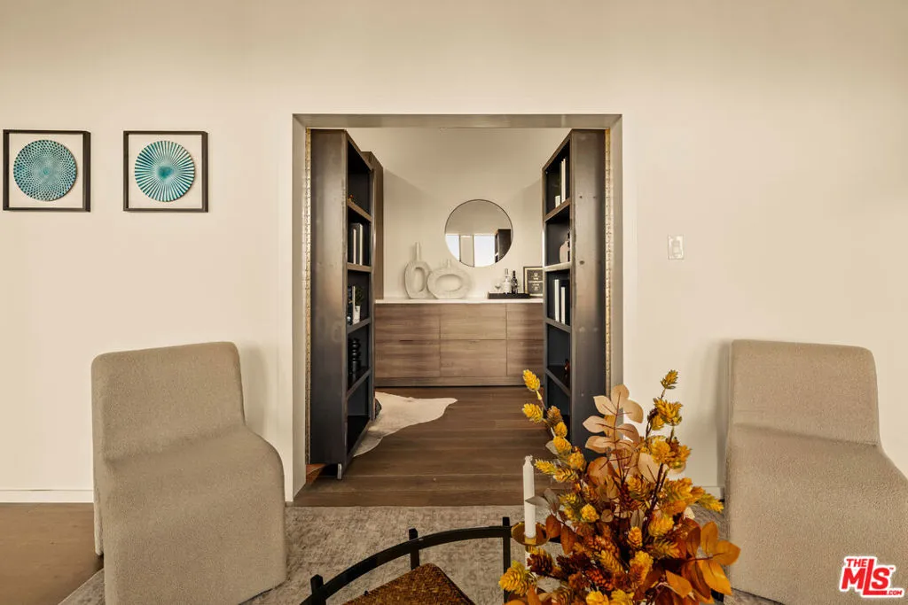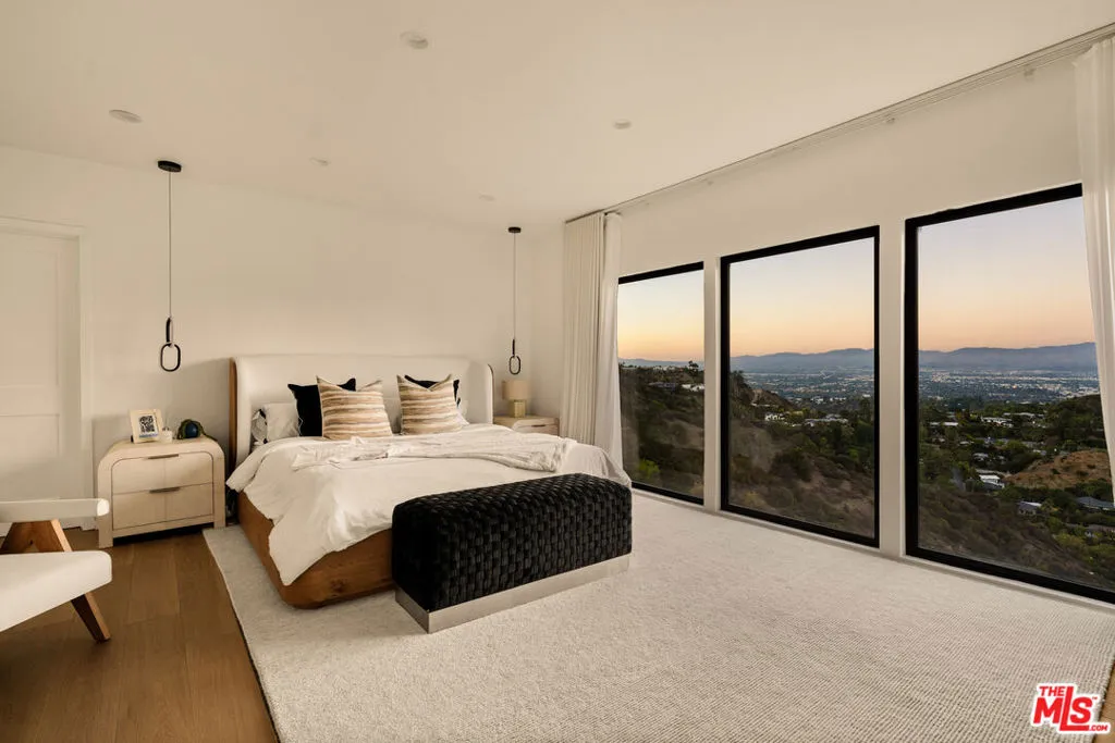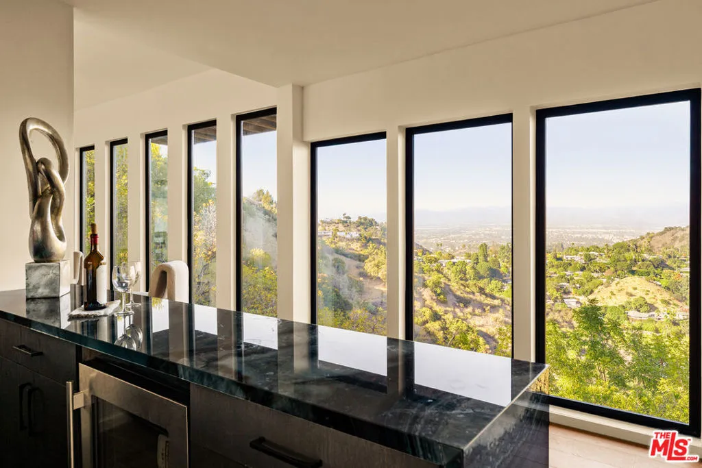 Perched high above Laurel Canyon, The Skyline Residence is all about the views and the feeling that comes with them. Panoramic city lights stretch across the horizon, sunsets pour into every room, and the energy of the canyon meets the skyline in a way that feels both elevated and completely private. Walls of glass slide open to dissolve the boundary between indoors and out, flooding the home with natural light and extending the living space onto expansive decks, capturing the essence of California living. From there, the home reveals its architectural soul. A sculptural curved plaster staircase rises beneath soaring ceilings, anchoring a space that feels both dramatic and inviting. The main level flows seamlessly from a statement living room to a refined dining area and into a chef's kitchen outfitted with custom oak cabinetry, striking Taj Mahal quartzite counters, and top tier appliances. Above, the upper deck centers around a heated pool with panoramic skyline views, surrounded by space to lounge, dine, and take in the sunset. Below, a covered terrace offers a more intimate escape for morning coffee, yoga, or shaded afternoons, while a private staircase leads to a lush garden retreat. The primary suite is its own sanctuary. Wake to walls of glass framing the city, then unwind in a spa like bath featuring a freestanding tub, a stunning walk in shower, custom vanity, and skylight overhead. A boutique style walk in closet completes the experience. Two additional bedrooms and a beautifully appointed bath provide flexibility for guests or family. The lower level is designed for connection and creativity, with multiple lounge areas, a custom bar, and a hidden room tucked behind a bookshelf. Whether used as a screening room, studio, office, or wellness space, it adapts to your lifestyle. Smart home features include Lutron lighting, integrated sound, and a two car garage. Set on a quiet street within the coveted Wonderland School District, The Skyline Residence offers rare privacy just minutes from West Hollywood, Beverly Hills, and Studio City. This is more than a home. It's a vantage point, a feeling, and a lifestyle above it all.
