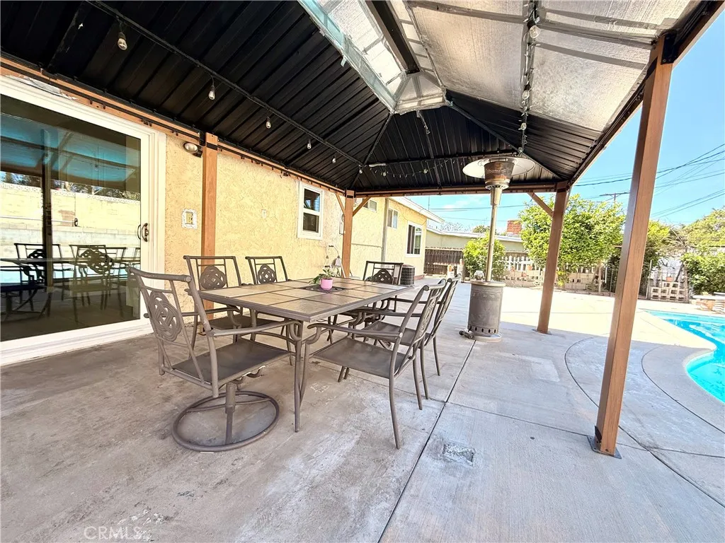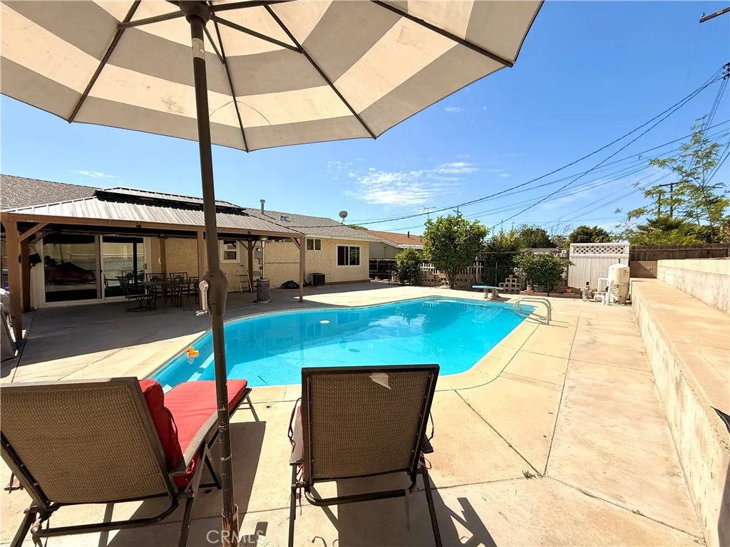 Welcome to 12471 Claretta Street—an inviting 3-bedroom, 2-bath home offering privacy, space, and exceptional outdoor living on a generous 7,500+ sq. ft. lot. Behind the gated front entry, you’re welcomed by an expansive concrete driveway with ample parking—perfect for multiple vehicles, RV and/or boat parking. The property is fully enclosed with private brick and iron fencing, offering both security and seclusion. Inside, enjoy a spacious and comfortable living area filled with natural light, complemented by laminate and tile flooring throughout and dual-pane windows. The home offers a functional layout ideal for both everyday living and entertaining. The kitchen features granite countertops, white cabinetry, and stainless-steel appliances, flowing into a dining area with a ceiling fan and sliding doors that lead directly to the backyard. The bedrooms are generously sized and include ceiling fans and mirrored closet doors. Recent upgrades include copper plumbing and newer toilets, along with central A/C and heating for year-round comfort. Step outside to your private backyard retreat—complete with a large pool, covered gazebo perfect for entertaining, and a low-maintenance yard with extensive cement work. The space is ideal for hosting gatherings or simply enjoying sunny Southern California days. A garden area with citrus trees and rose bushes adds charm, along with additional storage space. The garage is currently being used as a bonus room, offering flexibility for a home office, gym, or additional living space, with the option to use it as a garage if desired as well. Gated, private, and full of possibilities—this property features a large, low-maintenance lot with a spacious pool, a clean, move-in ready interior, and flexible indoor-outdoor spaces perfect for entertaining and comfortable living.