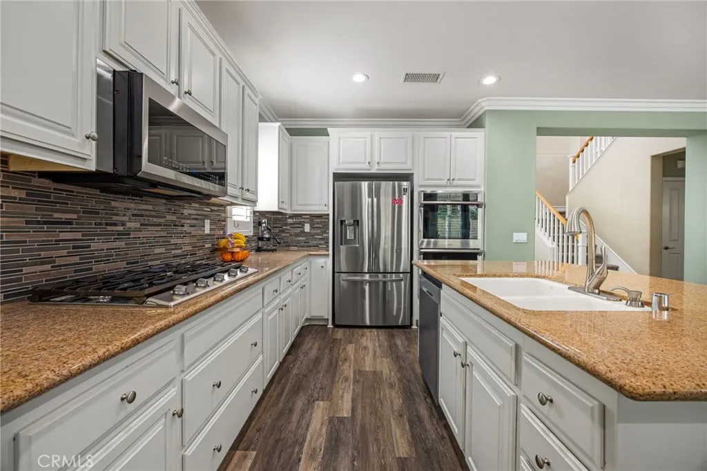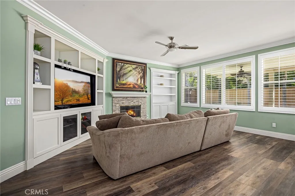 ***HIGHLY UPGRADED + PAID OFF SOLAR*** Welcome to this highly upgraded masterpiece nestled in the prestigious Canyon Hills community of Lake Elsinore. This gorgeous residence perfectly blends sophisticated design with functional comfort, offering a spacious floor plan that includes 4 bedrooms and 3 bathrooms. From the moment you step inside, the attention to detail is evident, featuring elegant plantation shutters and high-end upgraded wood flooring that flows seamlessly through the main living spaces. The heart of the home is a chef’s dream kitchen, meticulously designed with sleek granite countertops, a large central island, and upgraded white cabinetry. Professional-grade stainless steel appliances and a custom tiled backsplash complete this culinary haven, which opens directly into the bright, airy family room, ideal for both daily living and grand entertaining. For those needing a dedicated workspace, the main floor offers a versatile office/den, along with a convenient downstairs bedroom and full bathroom, perfect for guests or multi-generational living. Upstairs, the home continues to impress with a versatile loft, providing the perfect secondary hangout spot or media room. You’ll stay comfortable year-round with the peace of mind provided by two newer A/C units. The primary suite serves as a true retreat, while the additional bedrooms are generously sized and well-appointed. Step outside to your private backyard oasis, where indoor-outdoor living is elevated by a premium alumawood patio cover and stylish stamped concrete throughout. Whether you're hosting a summer BBQ or enjoying a quiet morning coffee, this low-maintenance space is built for relaxation. Located in the desirable community of Canyon Hills, you are just a short walk away from resort-style amenities, including sparkling pools, spas, parks, playgrounds, basketball courts, and scenic picnic areas. This is more than just a house; it’s a lifestyle upgrade in one of the most sought-after neighborhoods in the Inland Empire.