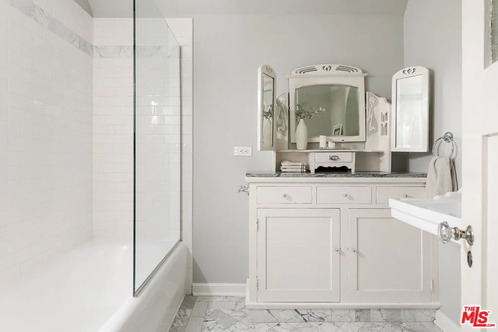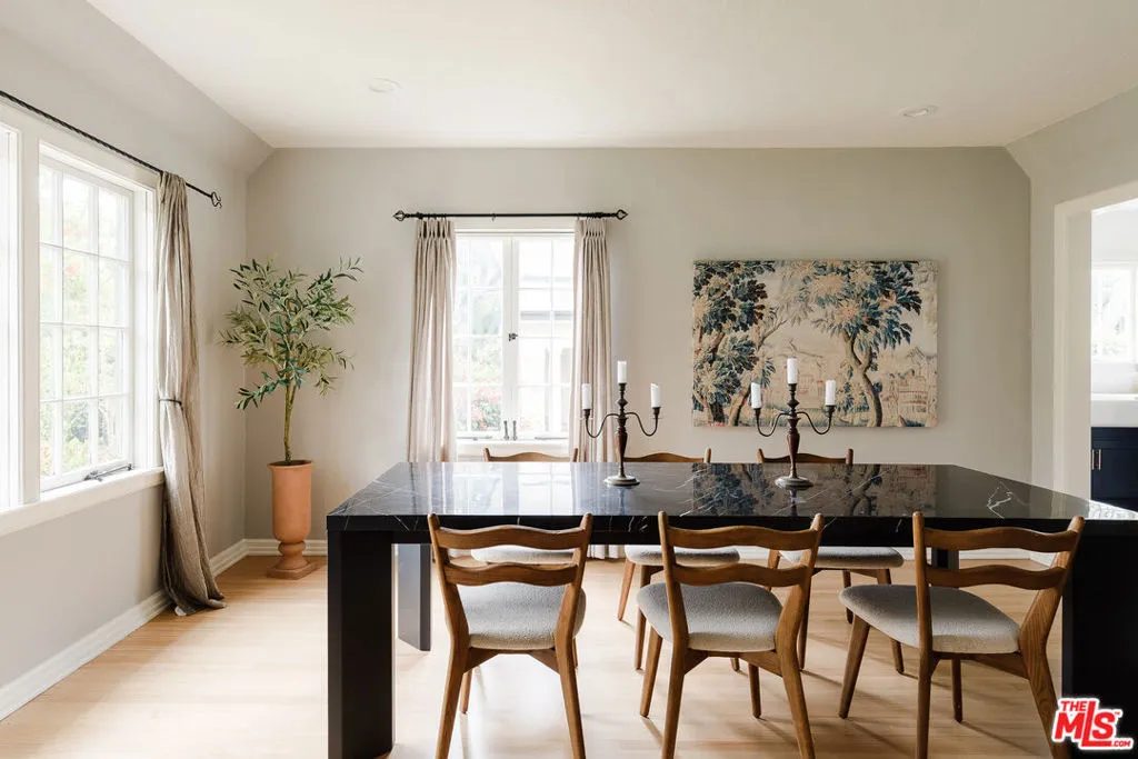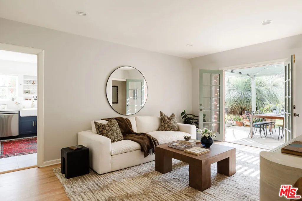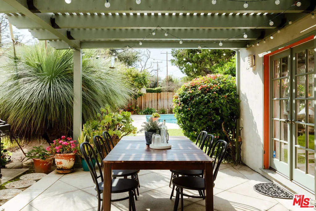 Nestled on an expansive 11,000 sq ft lot, this enchanting 2-bedroom, 2-bathroom Tudor-style home perfectly blends timeless architectural character with modern conveniences. From the moment you arrive, you are greeted by a large lot with manicured gardens and towering hedges that create a secret sanctuary, feeling worlds away from the hustle and bustle. The exterior's classic design invites you in, while the meticulously maintained interiors showcase the perfect blend of vintage charm and contemporary upgrades. Inside the living room you are greeted by lots of natural light, recently refinished original wood floors, a beautiful built-in shelf, a cozy fireplace and high ceilings. The spacious dining area is ideal for both everyday meals and entertaining. The kitchen boasts LG appliances, ample counter space, and plenty of natural light. The primary bedroom is a tranquil retreat, boasting a walk-in closet, en suite bathroom, and direct access to the back patio and pool through classic French doors. The outdoor area is a true oasis. Enjoy a coffee under the shade of the back patio, take a dip in the large pool adorned with majestic lion fountains, or catch some sun in the spacious and private back yard. The property has old growth fruit trees including a cumquat, pomelo, orange, lemon, avocado and few exotic plants like the Australian Grass Tree. The garage offers versatile bonus space that could be converted to an ADU, office or for use as storage. This property is in a quiet and serene part of Altadena with spectacular mountain views. It's just a short walk to Prime Pizza and minutes from Stater Brothers. This property is a quiet retreat that captures the very best of life in Altadena.