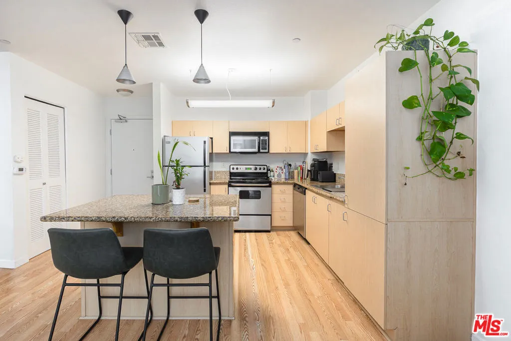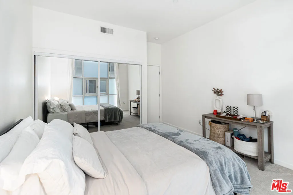 Located in the vibrant core of Downtowns Financial district, this one-bedroom residence at Library Court places culture, dining, and green space just steps away. The thoughtfully designed floor plan offers an airy feel, highlighted by tall ceilings and expansive east-facing windows that welcome morning light. The kitchen features stainless steel appliances, warm-toned wood cabinetry, and abundant prep space, while the enclosed bedroom offers flexibility for a home office or additional furnishings; the bathroom showcases tiled flooring and plentiful storage. Additional features include in-unit laundry, central HVAC, secured parking near the elevator, and access to a serene courtyard, fitness center, and onsite security, all just steps from the Library, Grand Central Market, museums, concert venues, Little Tokyo, Metro access, and countless dining and nightlife options.