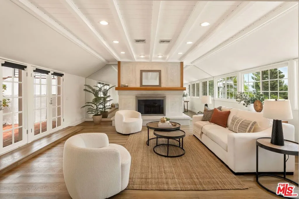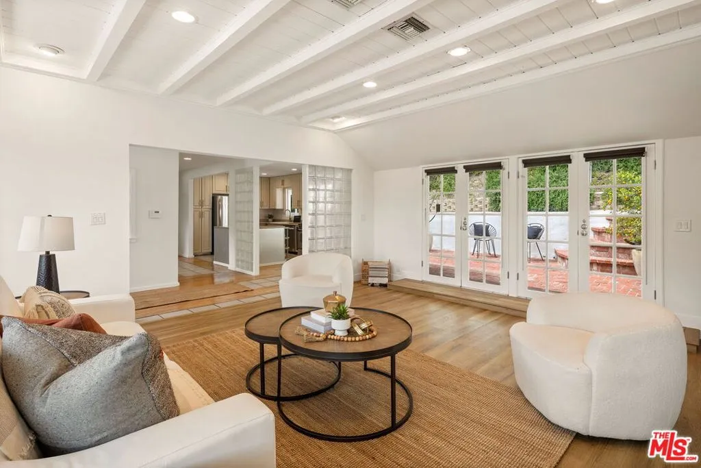 Nestled in the hills just north of the boulevard in prime Sherman Oaks, this light-filled Cape Cod residence blends East Coast charm with classic Southern California Sun featuring mountain and canyon views. Minutes from the city's hustle and bustle, the home offers serene indoor-outdoor living with wonderful views and abundant natural light. A spacious viewing deck greets you before entering the home, Once Inside, the living room features a dramatic Tongue and Grove wood ceiling and a prominent fireplace, with unobstructed easterly views and French doors opening to a lovely west-facing patio. The adjacent dining room shares the same vistas and flows into the open kitchen the true heart of the home. All three bedrooms are situated on the south side on the home. The generous primary suite includes an en-suite bath, and a skylight that floods the room with natural light, plus French doors leading to a large patio. The two well-proportioned guest bedrooms are bright and comfortable. The rear grounds include an expansive brick patio with viewing and dining decks ideal for summer evenings and entertaining. There was once sunken Spa on the upper viewing deck that could be easily added back. Recent updates include both baths, electrical, plumbing and window upgrades. The rear exterior drainage system and sewer line have all been updated. A refreshed kitchen with stainless steel appliances, + Elfa closet organizers throughout. The interior has been freshly painted.This exceptional home captures the essence of refined hillside living in sought-after Sherman Oaks. The fireplace is decorative. There will be no credits or repairs