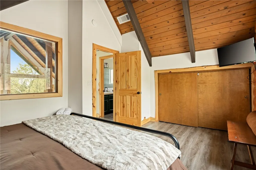 Welcome to Timberline Artisan Lodge, a beautifully remodeled mountain retreat where timeless cabin charm meets elevated design and craftsmanship. Thoughtfully redesigned by locally renowned builder John Radleigh, known for his exceptional wood craftsmanship, this home showcases custom details and authentic materials that truly set it apart. The exterior features hand-selected local logs, carefully crafted to create the feel of a true log cabin while maintaining a refined and cohesive aesthetic. Every detail reflects Radleigh’s signature style—blending rustic authenticity with modern livability. Step inside to discover a light-filled interior with vaulted ceilings, rich wood accents, and an open, airy feel throughout. The stunning A-frame living space showcases dramatic picture windows that frame the surrounding forest, creating a breathtaking focal point and bringing the outdoors in. Exposed beams, warm wood tones, and curated finishes create a cozy yet elevated mountain atmosphere. The home offers multiple comfortable sleeping areas, including spacious bedrooms and a charming bunk room, perfect for hosting family and guests. The primary suite serves as a private retreat with its own sitting area, fireplace, and peaceful treetop views—offering both comfort and privacy. The kitchen and living areas flow seamlessly, ideal for entertaining or relaxing after a day in the mountains. Bathrooms feature updated fixtures and a fresh, neutral palette, while thoughtful design elements throughout enhance both style and functionality. Additional features include a dedicated laundry area, ample storage, and well-appointed spaces designed for everyday ease. Whether you're seeking a full-time residence, weekend escape, or income-producing property, this home offers exceptional versatility. Surrounded by nature yet conveniently located, Timberline Artisan Lodge captures the essence of mountain living—peaceful, scenic, and effortlessly inviting. Enjoy morning coffee on the deck, cozy evenings by the fire, and year-round enjoyment in a setting that feels like a true retreat. A rare opportunity to own a turnkey mountain home with distinctive craftsmanship, authentic materials, and timeless appeal.