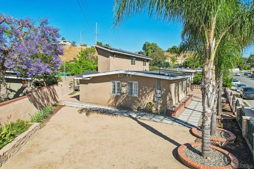 BEAUTIFUL RARE 4 BEDROOM HOME (WITH 2 BEDROOMS ON THE FIRST FLOOR) * 16 PANEL SOLAR-POWERED HOME * GREAT BACKYARD WITH LOTS OF CUSTOM FEATURES AND PLENTY OF ROOM FOR ENTERTAINING * LARGE FRONT SIDE YARD WITH EXPANSION POSSIBILITIES! Welcome to this beautifully upgraded 4-bedroom, 2-bath home situated on a fully fenced lot in the heart of Oak Park. Offering a functional and inviting layout, this home features two bedrooms and a full bath on the main level, with two additional bedrooms and a full bath upstairs—ideal for flexible living. The spacious kitchen is designed for both everyday living and entertaining, showcasing granite countertops, a large island with bar seating, stainless steel appliances, and ample cabinetry. French doors open seamlessly to the backyard, creating the perfect indoor-outdoor flow. Inside, you’ll find a blend of tile and laminate flooring, recessed lighting, and a bright, open feel throughout. The home is equipped with a large solar system for energy efficiency, a new water heater installed in 2025, and a newer HVAC system from 2022 with a NEST thermostat for modern comfort. Step outside to a private backyard built for entertaining, complete with a custom outdoor BBQ kitchen featuring a KitchenAid grill, poured concrete countertops, and a cozy fireplace with several seating areas. The large side yard offers incredible potential for an ADU, pool, gardening, storage or play area, giving you room to expand and create your ideal outdoor space. Additional highlights include an attached 1-car garage with laundry, two additional driveway parking spaces, a 3-camera security system, and a Eufy smart front door lock. The home was tented for termites in 2024 and freshly stuccoed in 2023, providing peace of mind for years to come. Conveniently located just minutes from Chollas Lake Park, City Heights dining, Balboa Park, Downtown San Diego, and Coronado beaches, with easy access to major freeways. No HOA or Mello-Roos. This is a rare opportunity to own a move-in ready home with space, upgrades, and future potential in a central San Diego location.