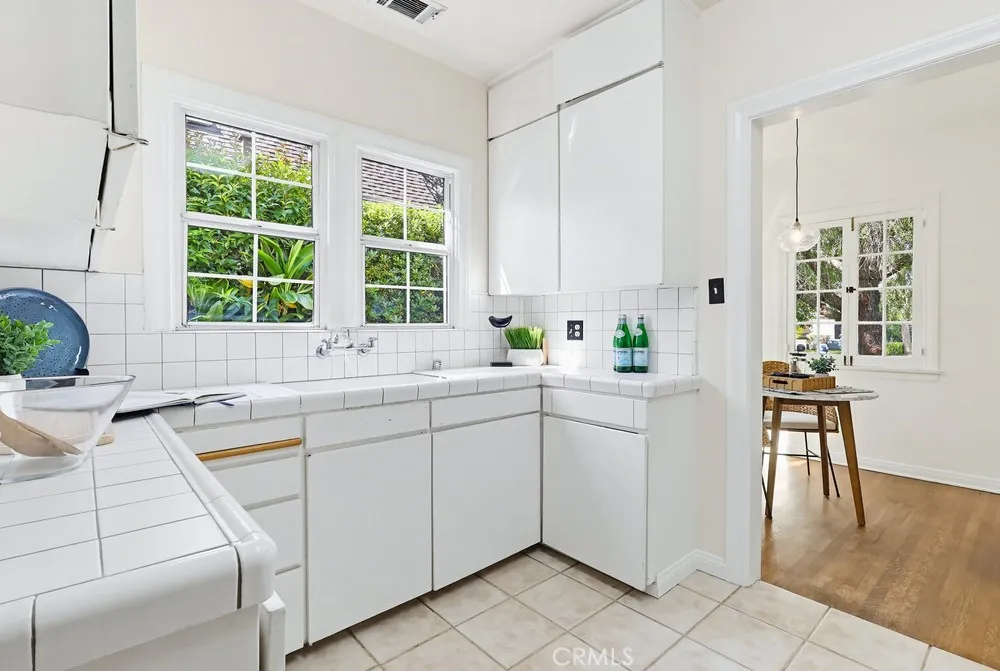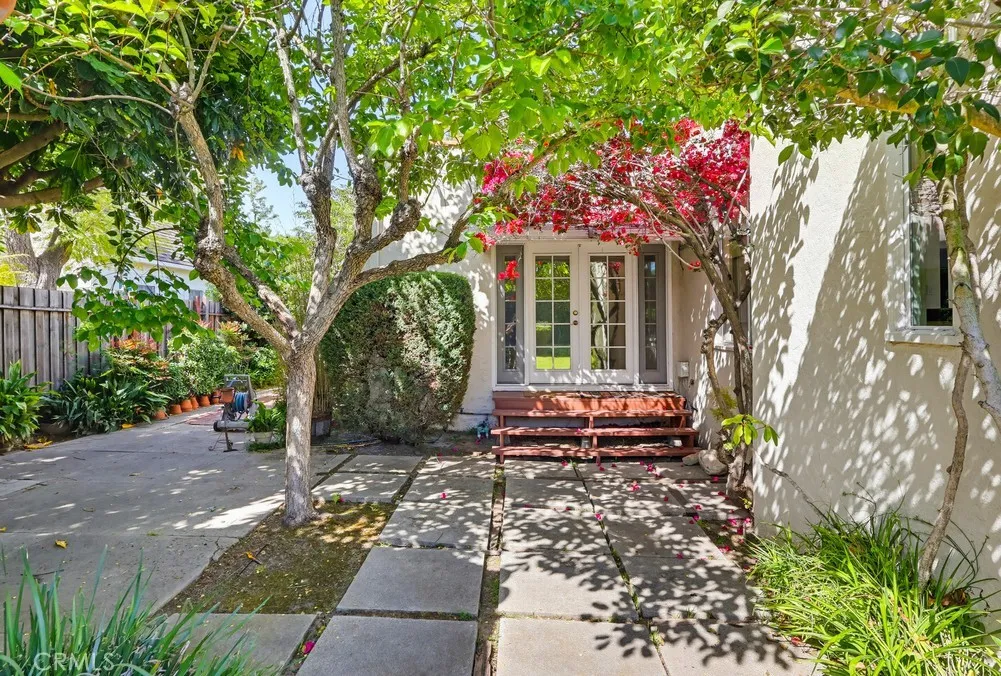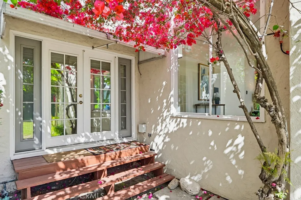 This is the Spanish Revival you’ve been dreaming of—rich in character, beautifully maintained, and brimming with original charm. Nestled on a hidden gem of a street in the coveted Los Cerritos neighborhood of Long Beach, this home stands out with its thick stucco walls, graceful arches, red-tiled roof, and lush, mature landscaping. Step inside and fall in love with the soaring ceilings of the living room, highlighted by a dramatic arched front window, a cozy fireplace, built-in shelving, and wrought-iron original wall sconces. Arched transitions lead you seamlessly into the elegant dining room and a delightful breakfast nook—perfect for enjoying your morning coffee. The smooth white walls throughout the home are perfectly complemented by rich, dark wood flooring and original woodwork, showcasing timeless craftsmanship. The kitchen, bathed in sunlight from its south-facing window, is bright, airy, and conveniently adjacent to a side entrance leading to the laundry room. Down a long, arched hallway, you’ll find a cozy den featuring French doors that open to the backyard, where lush Bougainvillea adds a vibrant pop. Both the den and the rear primary bedroom offer tranquil backyard views, creating a serene retreat. The spacious primary bedroom has high ceilings, large windows, ample storage, and an ensuite bathroom with a walk-in shower and a generous vanity area. The private backyard is perfect for relaxing or entertaining and includes an oversized garage with alley access. Recent updates include a brand-new, permitted roof and a 2024 HVAC system, ensuring modern comfort in this timeless home. Located in the heart of Los Cerritos, this neighborhood is known for its walkable charm, proximity to Bixby Knolls’ shopping and dining, and easy access to freeways—all while maintaining a welcoming, small-town vibe. This exceptional home is a rare find and is sure to capture hearts quickly. Don’t let it slip away!