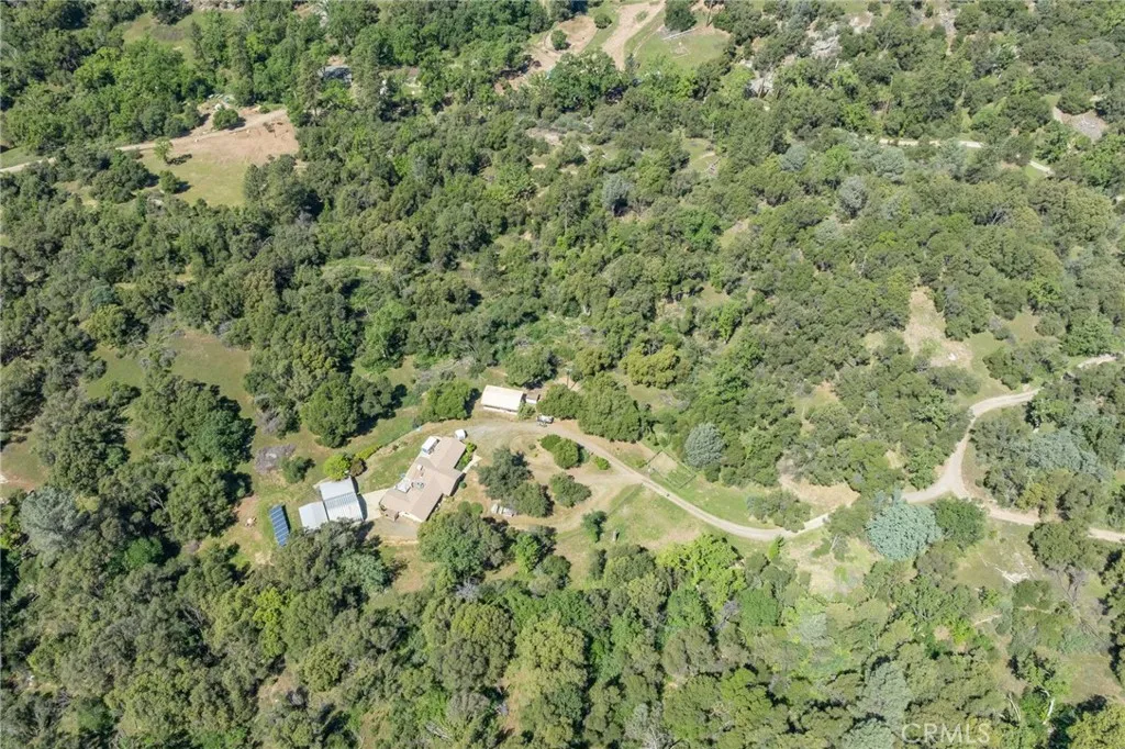Welcome to your own private retreat with this large 4-bedroom, 2.5-bath home offering 2,356 sq ft of comfortable living on 40 private acres. The kitchen opens to a spacious living room with high ceilings, creating an open and inviting layout, anchored by a wood stove set on a beautiful river rock hearth. The home also features HVAC heating and cooling and a walk-in pantry. The primary suite offers a jetted soaking tub, dual sinks, a large walk-in closet, and a sliding glass door leading to the covered back patio, approximately 240 sq ft, perfect for enjoying the peaceful surroundings. Around the home, approximately 2 acres are fenced with 6-foot fencing and include a garden, chicken coop, fruit trees, and mature landscaping, while the remaining acreage provides privacy with no homes or roads in sight. Additional improvements include a 900 sq ft shop, a 440 sq ft garage, and three carports, one previously used for a destination trailer with full hookups. Owned solar adds efficiency to this quiet, private property where you can enjoy abundant birdlife during the day and the calming sounds of frogs and crickets at night.