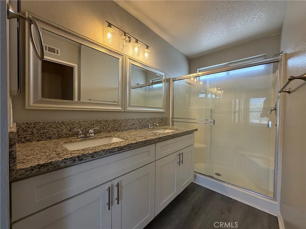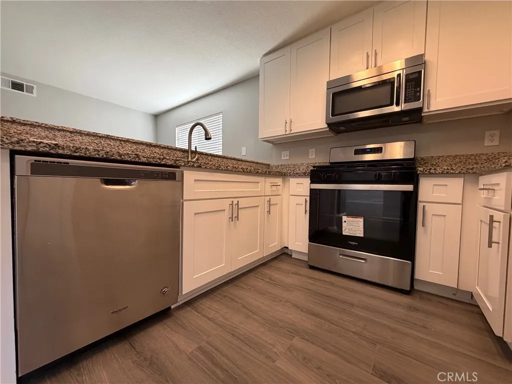 FRESHLY REMODELED 3 BEDS, 2.5 BATHS, 2 CAR GARAGES, 4500 SQFT BLOCK WALL FENCED LOT!! All appliances including HVAC, Water Heater, Kitchen appliances was recently replaced. This home has brand new wood flooring downstairs and brand new carpet flooring upstairs. The entire interior just been painted, newer kitchen has been remodeled with granite counter, large stainless steel farmer sink with pull down faucet, newer Whirlpool Stainless Steel appliances includes stove, dishwasher and a microwave. Downstair 1/2 guest bathroom has matching granite counter, undermount sink, and new toilet. Large living room with lots of window and a Freestanding Double sided fireplace! Separate family room next to the kitchen and dining area by the sliding door. Inhouse separate laundry room. Beautiful stairs way lead to upstair has all 3 bedrooms and 2 other full bathrooms. Primary bedroom is extra large with larger windows. Attached primary bathroom has large granite counters with double undermount sinks and faucets. and walk in large shower, separate toilet room. The common bathroom has matching granite counter, undermount sinks with faucet, new toilet, tub and shower. All bedrooms has large windows and ample closet spaces. Window blinds, ceiling lights, light fixtures throughout. THe back yard is complete with expensive block walled fencing all 3 sides and also have retaining wall with planter at the very back. A VERY NICE HOME FOR AFFORDABLE PRICE!!