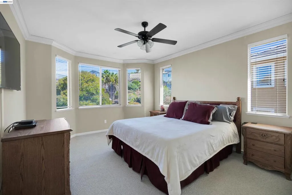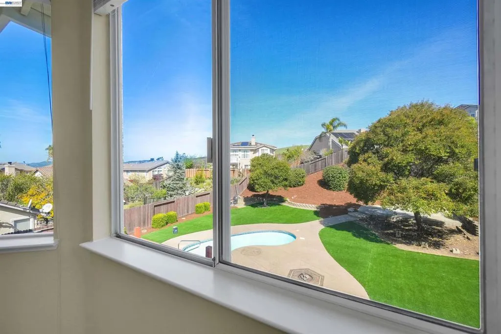 Located in the highly desirable 5 Canyons Neighborhood, this "original owner" home sits on a larger 11,315 sq ft lot and boasts an incredible low-maintenance backyard featuring extensive hardscaping, abundant Synthetic Turf Grass, and a fiber glass in ground swimming pool that will make your home the envy of friends and family. Unglazed flat-plate type solar pool heating panels keep the pool comfortable all summer! Inside, the kitchen offers ample oak cabinetry, crown molding, and high-end appliances. Desirable split level plan has a natural flow to the upstairs or downstairs. Upstairs you'll enjoy the living and dining room areas, the home office, a 1/2 bath, and the primary suite with ensuite bathroom. Downstairs you have a family room with access to the backyard, another primary suite with ensuite bathroom, 2 more bedrooms and another full bath. New HVAC system throughout the home. Clear termite report and all roof repairs have been recently completed. Location offers access to multiple parks, Highways, BART, nearby medical services, and convenient shopping. Only one question here... which family will be enjoying this summer's barbecues while living in this home?