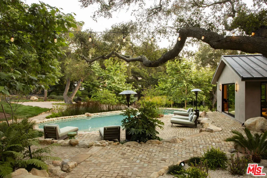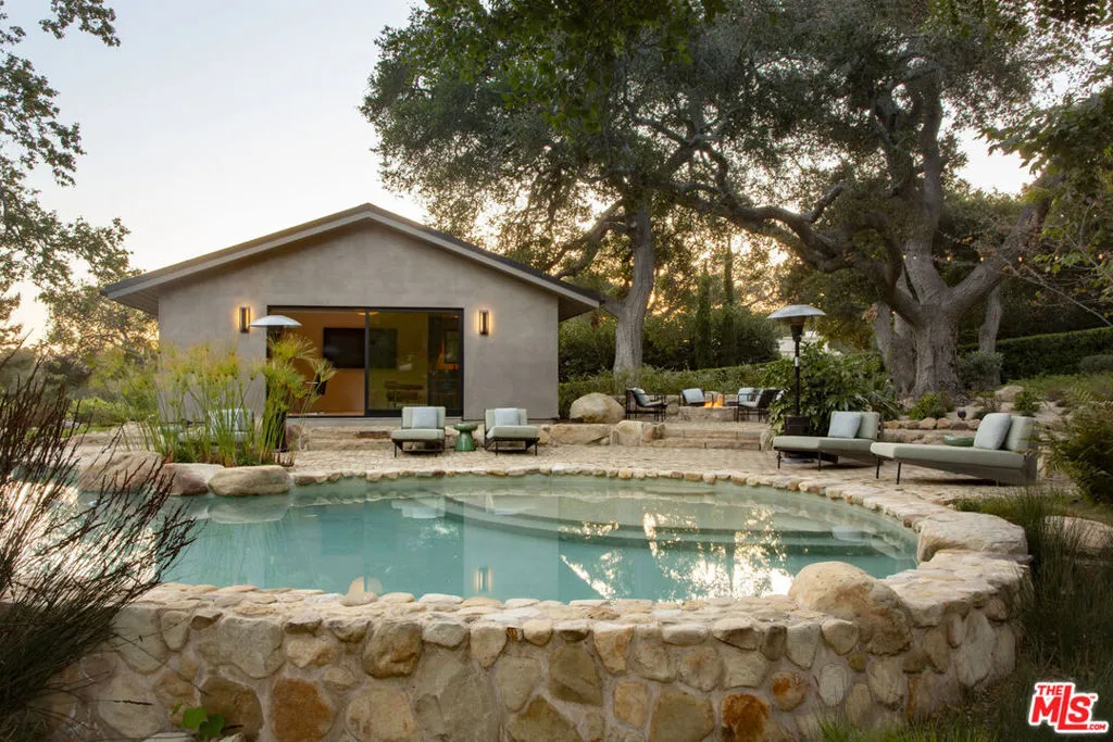 Thoughtfully renovated in 2022, this single-level Montecito compound blends high style and chic architectural design with the ease of California indoor-outdoor living. Set on 2.53 acres in the beloved Riven Rock neighborhood, the 4,873 sq ft main residence offers 5 beds and 4.5 baths, complemented by a 496 sq ft detached ADU. A dramatic great room anchored by a central fireplace brings together a sleek kitchen, gracious dining, and everyday living spaces, while a separate media room offers a more private retreat. Outdoors, the property unfolds with a pool, spa, fire pit, chef's garden, fruit trees, and multiple areas for entertaining. A rare blend of design and comfort, grounded in the Montecito lifestyle. Just minutes from Montecito's Upper Village, hiking trails, and beaches.