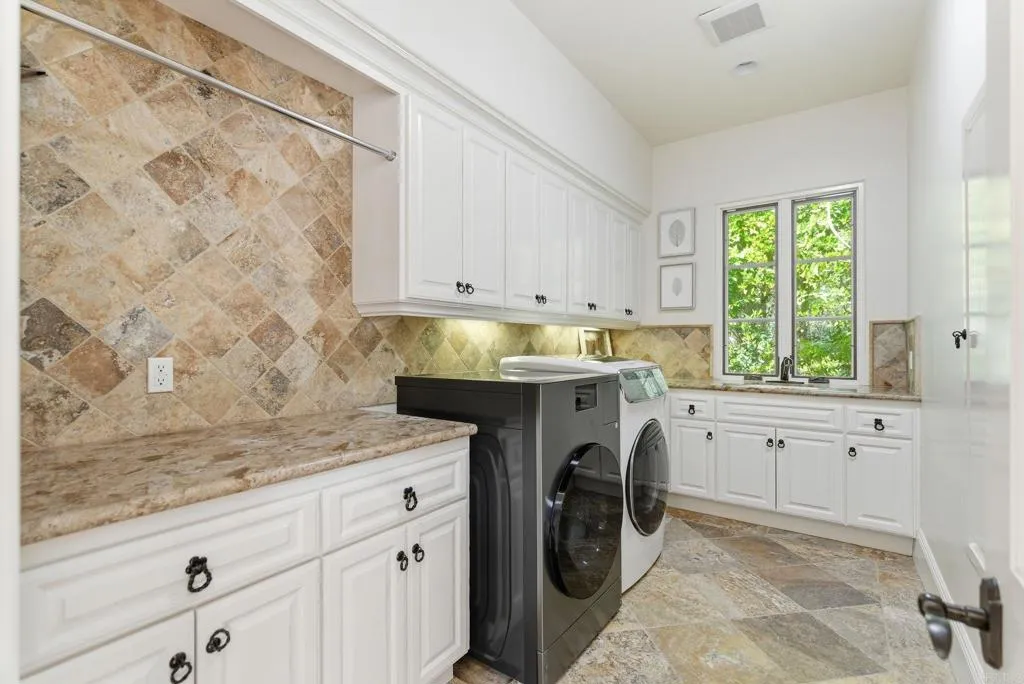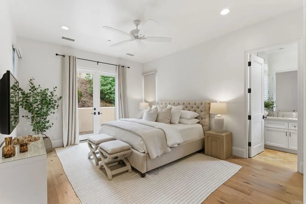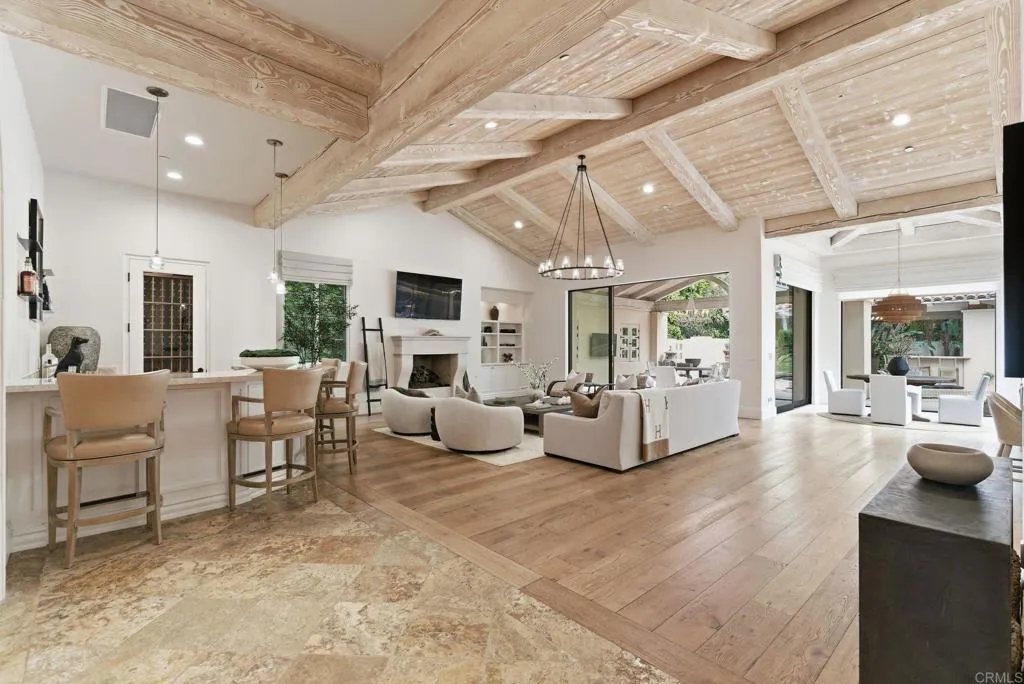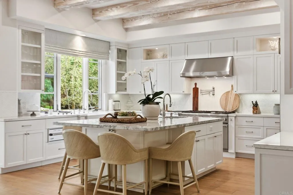 Set within the guarded gates of Fairbanks Ranch in Rancho Santa Fe, this exceptional estate offers a rare combination of scale, privacy, and thoughtful design. Privately positioned on 1.71 acres of lush, meticulously landscaped grounds, the 6,790 square foot residence embodies a timeless architectural style with a seamless blend of luxury and comfort. A grand motor court welcomes you with a three-car garage in addition to a separate two-car garage, along with a detached casita ideally suited for guests, extended family, or a private office. A charming courtyard anchored by a classic fountain creates a true sense of arrival, blending classic Rancho Santa Fe character with refined, elevated design. Originally built in 2008 and extensively renovated in 2017, the home has been updated to balance modern convenience with enduring quality. The interiors are filled with natural light and defined by soaring ceilings, custom mill work, and well-proportioned living spaces. Smart home wiring further enhances functionality while maintaining a clean and sophisticated aesthetic. The kitchen serves as the centerpiece of the home, featuring custom cabinetry, stone countertops, and an oversized island that opens to the main living areas, creating an ideal environment for both everyday living and entertaining. All bedrooms are en suite and feature spacious walk-in closets, offering both comfort and privacy. The primary suite serves as a true retreat, complete with spa-inspired amenities and serene views of the surrounding grounds. Additional guest suites and flexible living spaces provide versatility for a variety of living needs. The backyard is designed for year-round enjoyment, anchored by a saltwater pool and spa, multiple seating areas, and an outdoor entertaining pavilion. Updated exterior and landscape lighting enhance the setting into the evening, while mature landscaping provides both beauty and privacy. Located within one of Rancho Santa Fe’s most sought-after guard-gated communities, this property presents a rare opportunity to experience a refined and effortless lifestyle.