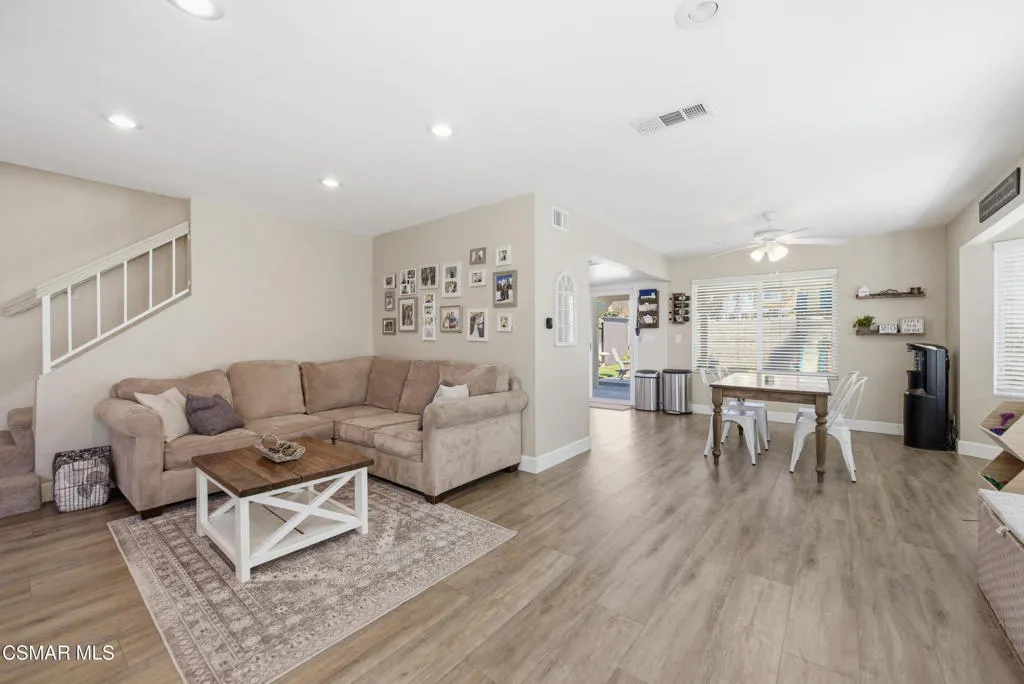 Beautifully upgraded 3-bedroom, 2.5-bath home located on a quiet cul-de-sac--with no HOA! This light-filled residence features an open-concept floor plan, highlighted by a spacious living room with fireplace and a generous dining area enhanced by a permitted bay window addition that brings in abundant natural light.The tastefully updated kitchen showcases quartz countertops, refaced cabinetry, and newer appliances. A well-appointed laundry room offers additional storage, and the remodeled downstairs powder room adds convenience for guests.Upstairs, you'll find three bedrooms and two updated bathrooms, including a private primary suite with its own remodeled bath and access to a large balcony--perfect for relaxing.The rear yard features a covered patio, and beautifully landscaped yard.Recent upgrades include an updated HVAC system, durable vinyl plank flooring on the main level, dual-pane windows throughout, and more. With its bright, airy interiors and desirable cul-de-sac location, this home offers both comfort and style in a highly appealing setting.