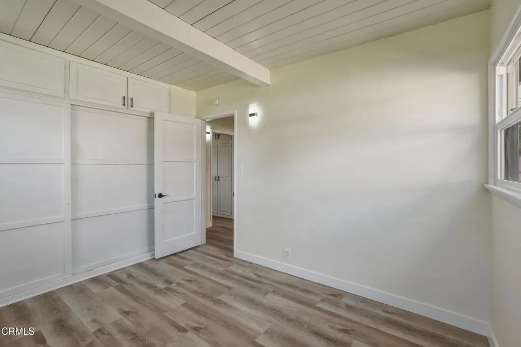 Charming and move-in ready, this 3 bedroom, 1 bathroom home in the heart of Hawthorne offers a perfect blend of comfort, style, and functionality. From the moment you arrive, you're welcomed by a well-maintained front lawn, clean lines, and inviting curb appeal complete with a long driveway and covered parking. Inside, the home features a bright and airy living room with vaulted, beamed ceilings, abundant natural light, and updated flooring that flows seamlessly throughout. The thoughtfully designed kitchen offers ample cabinetry, granite countertops, and a cozy dining area with views of the backyard, creating an ideal space for both everyday living and entertaining. Each bedroom is well-sized with generous closet space, while the bathroom maintains its classic charm with well-kept tilework. Step outside to a spacious backyard featuring lush green grass, mature landscaping, a patio area perfect for outdoor dining, and a detached structure ideal for storage or potential creative use. Conveniently located near local schools, parks, shopping, and major freeways, this home presents an excellent opportunity for both homeowners and investors alike.
