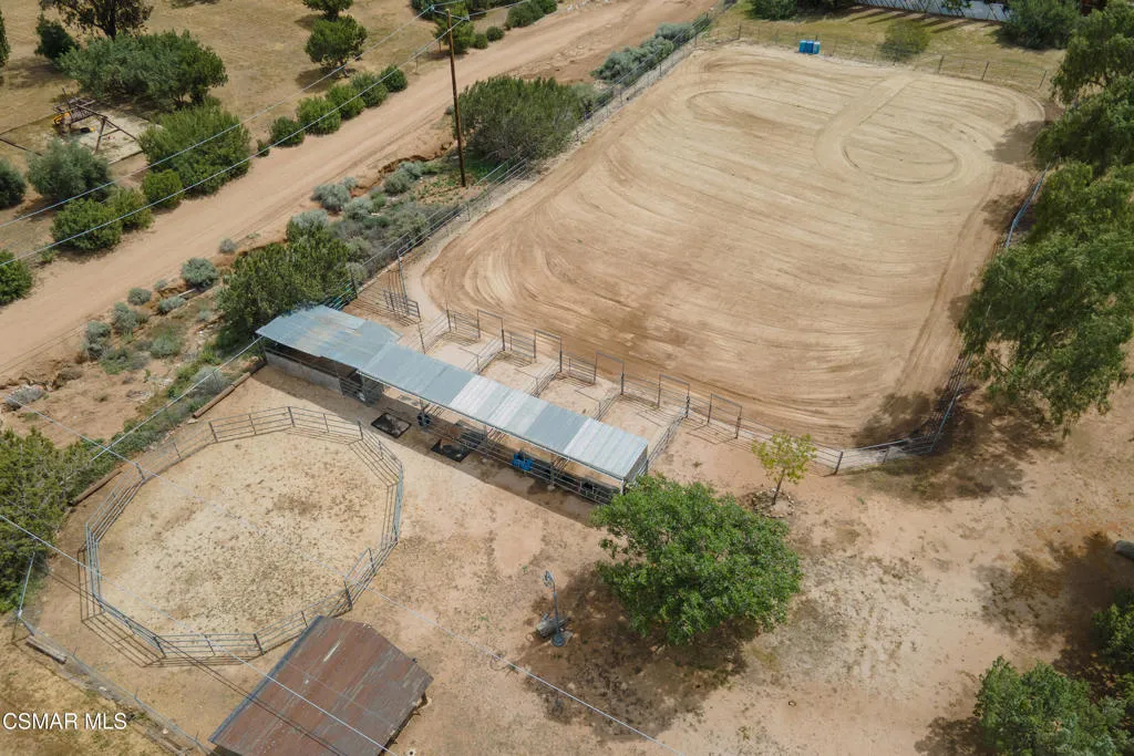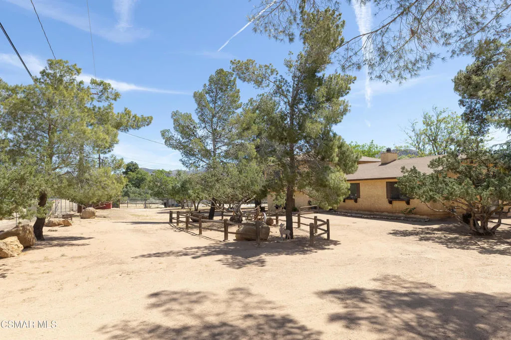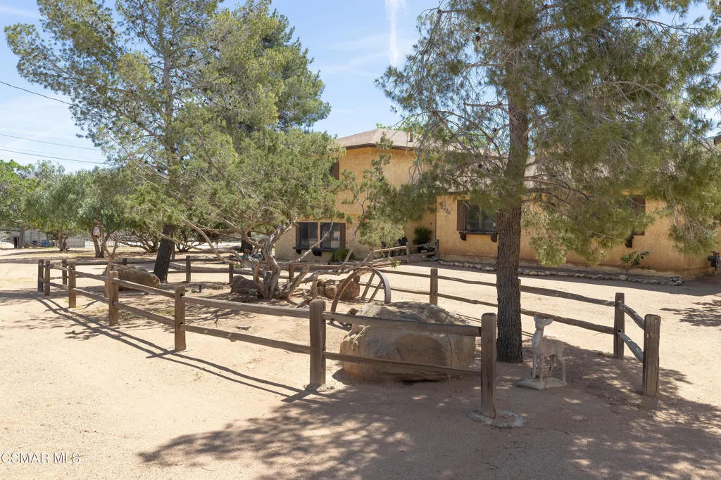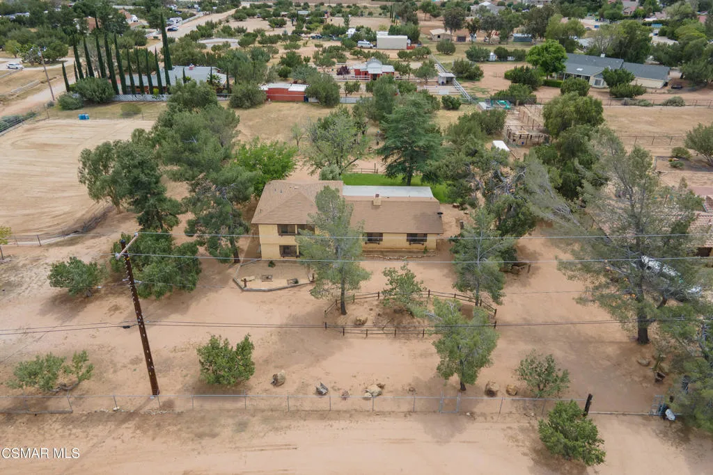 Welcome to this charming two-story ranch home set on approximately 2.5 acres, offering peaceful country living with everyday convenience. With 3 bedrooms and 2.5 bathrooms, this property blends comfort, function, and a true ranch lifestyle. The first floor features a spacious living room with a classic brick fireplace, a separate family room, and an updated kitchen with granite countertops and a breakfast bar, perfect for gathering and entertaining. A large formal dining room adds an elegant touch, while rich wood-look laminate flooring runs throughout the main living areas. The downstairs also includes a guest bath with stone countertops and a convenient laundry room/butler's pantry area. Upstairs, the large spacious primary suite offers a relaxing retreat with a spa-like bathroom featuring slate flooring and stylish accents. Two secondary bedrooms include mirrored closet doors, ceiling fans and share a well-appointed bath. Step outside to a fully fenced approx. 2.5-acre property with protective top fencing, ideal for animals and equestrian use. The grounds include horse facilities with a riding arena, round pen, wash rack with hot and cold water, and covered hay storage, along with unique features such as an owl tower and a charming 'Little House on the Prairie'-inspired outhouse. Nearby horse trails make this an exceptional setting for riders. Additional highlights include central AC and heat, and a two-car extended garage with an optional tack room. Conveniently located near the 14 freeway, offering easy access to Palmdale and the Valley while enjoying the space and serenity of ranch living.