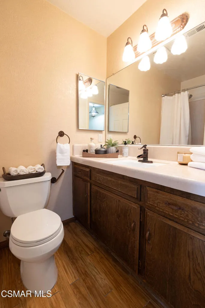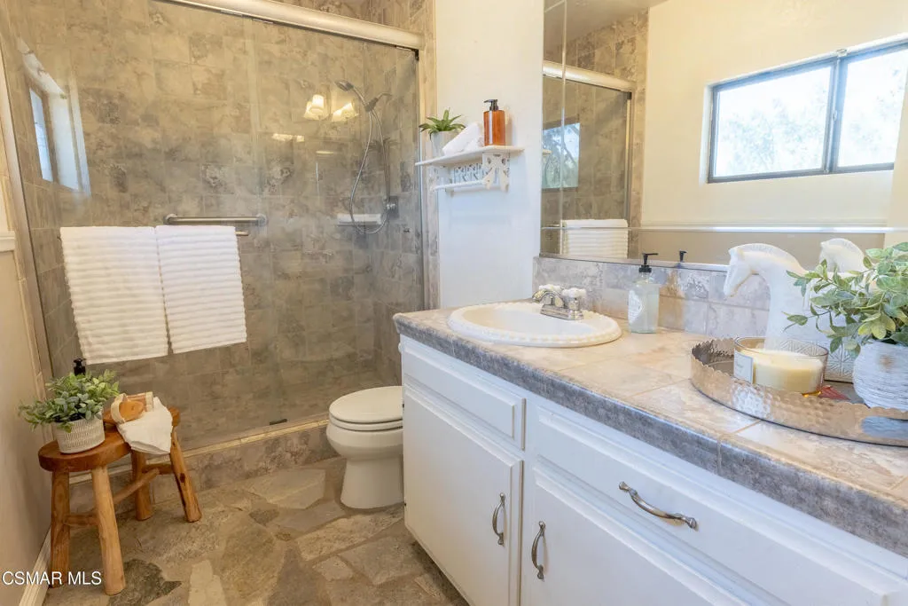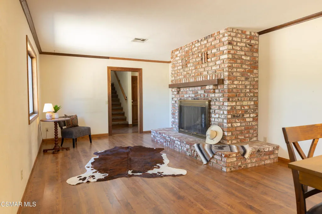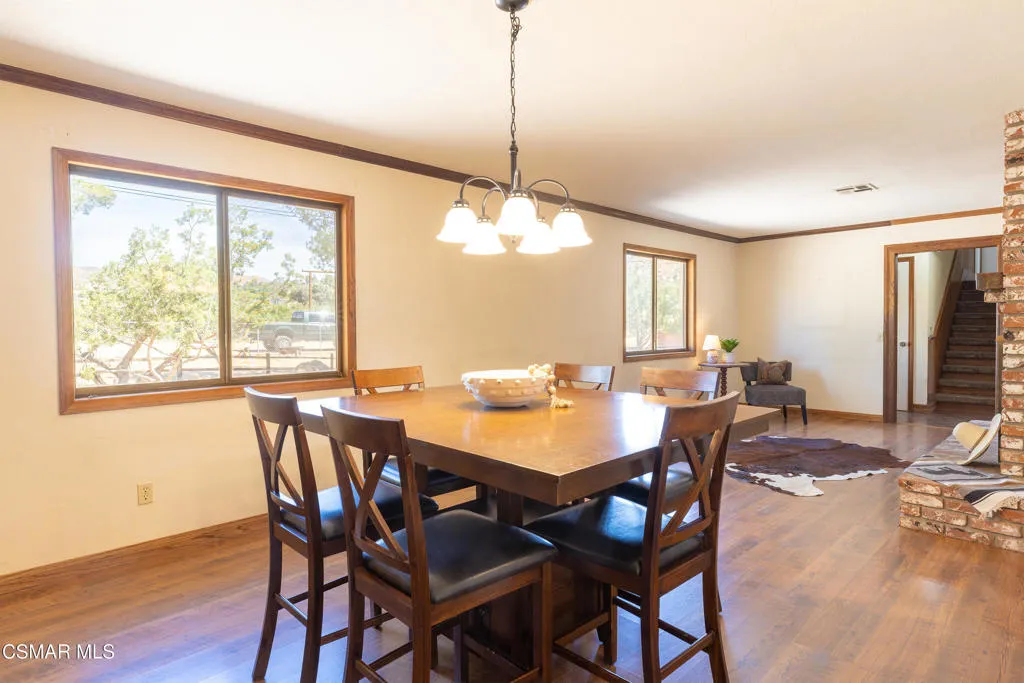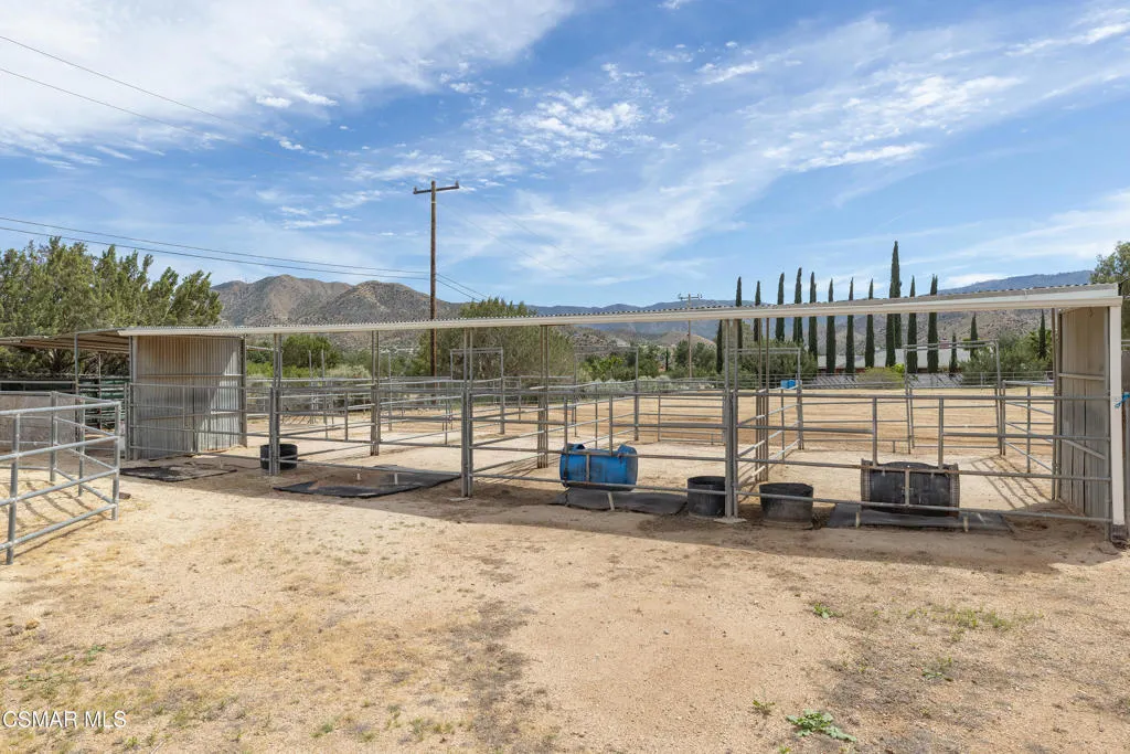 Welcome to this charming two-story ranch home set on approximately 2.5 acres, offering peaceful country living with everyday convenience. With 3 bedrooms and 2.5 bathrooms, this property blends comfort, function, and a true ranch lifestyle. The first floor features a spacious living room with a classic brick fireplace, a separate family room, and an updated kitchen with granite countertops and a breakfast bar, perfect for gathering and entertaining. A large formal dining room adds an elegant touch, while rich wood-look laminate flooring runs throughout the main living areas. The downstairs also includes a guest bath with stone countertops and a convenient laundry room/butler's pantry area. Upstairs, the large spacious primary suite offers a relaxing retreat with a spa-like bathroom featuring slate flooring and stylish accents. Two secondary bedrooms include mirrored closet doors, ceiling fans and share a well-appointed bath. Step outside to a fully fenced approx. 2.5-acre property with protective top fencing, ideal for animals and equestrian use. The grounds include horse facilities with a riding arena, round pen, wash rack with hot and cold water, and covered hay storage, along with unique features such as an owl tower and a charming 'Little House on the Prairie'-inspired outhouse. Nearby horse trails make this an exceptional setting for riders. Additional highlights include central AC and heat, and a two-car extended garage with an optional tack room. Conveniently located near the 14 freeway, offering easy access to Palmdale and the Valley while enjoying the space and serenity of ranch living.