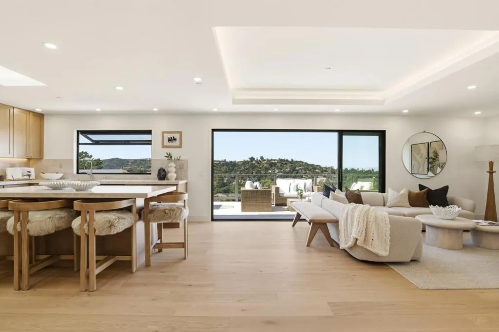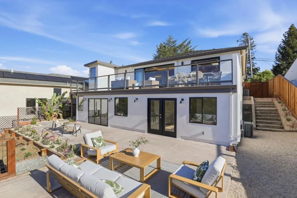A modern expression of old-world charm, where classic architectural detail meets a fresh, design-forward perspective & timeless materials frame sweeping views. Rebuilt & refined in 2026, this 2393 sq ft residence is grounded in a rich palette of oak, steel, stone & concrete, creating a home that feels timeless yet distinctly current. The home unfolds with an effortless, open-concept layout, enhanced by curated lighting details. The main level living room flows seamlessly into a chefs kitchen outfitted with oak cabinetry, Taj Mahal stone & polished nickel finishes. A pass-through bar window connects the kitchen to the outdoors, while a dramatic 10 ft sliding glass door opens to an expansive deck. Breathtaking canyon & bay vistas. The homes versatile floor plan offers 4 beds & 4 baths, with 2 bedrooms on each level, including a private suite on both floors. The primary suite is a true retreat with a spa-like bathroom with fluted tub & walk-in closet. A separate family room provides additional living space, opening to the homes beautifully terraced 18900 sq ft lot. Dedicated laundry room. Updated systems include AC & fire sprinklers. 1-car garage is complemented by 2 driveways. A rare offering that balances proportion, flow, & materiality just moments from the Peninsula's best.