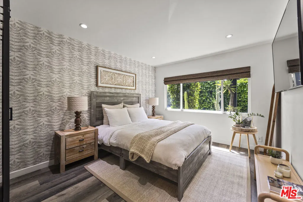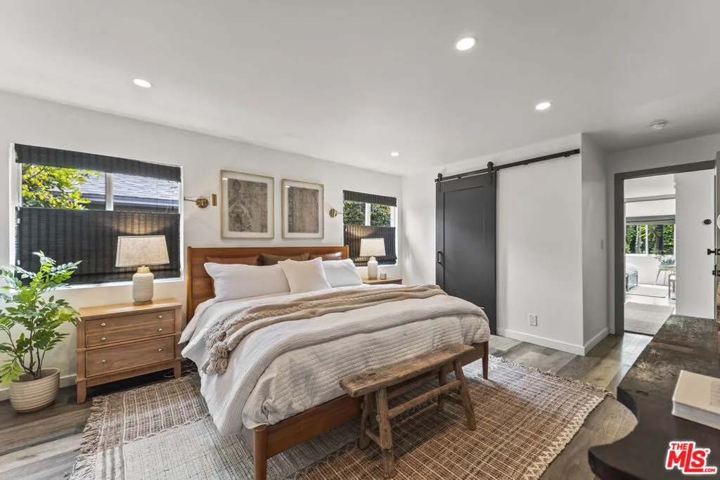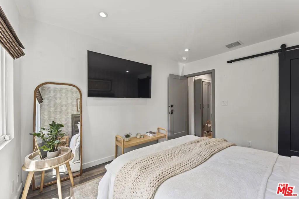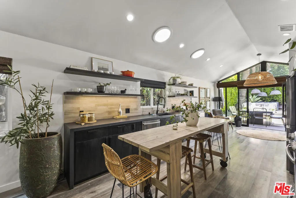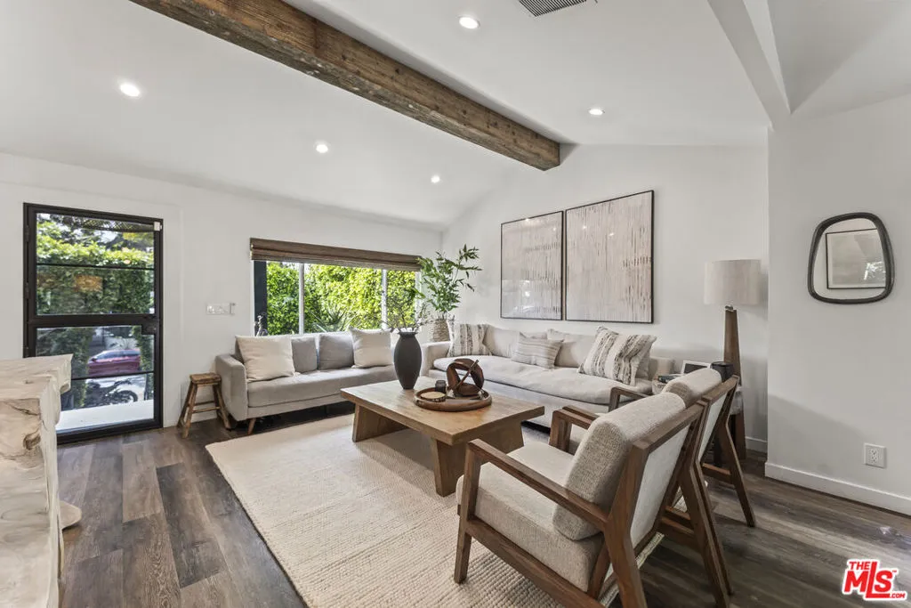 Priced below comps, this effortlessly cool and design-driven Modern Craftsman offers a rare opportunity in a highly walkable West Hollywood location, just moments from top dining, cafes, boutiques, and creative hotspots. Positioned below recent comparable sales, it stands out as one of the best values currently available. The 2-bedroom, 2-bathroom main residence features vaulted ceilings, exposed wood beams, and abundant natural light, creating an open, airy atmosphere with an elevated boho-chic aesthetic. Expansive glass doors open to a private deck and lush outdoor spaces, delivering seamless indoor-outdoor living ideal for both everyday enjoyment and entertaining. A fully permitted detached 1-bedroom, 1-bathroom ADU with its own private entrance adds exceptional versatility perfect for guests, a creative studio, or income potential. This flexibility also makes the property an ideal turnkey option for a 1031 exchange. This new offering presents a compelling opportunity for buyers ready to act. Select high-end designer furnishings may be included, offering a truly move-in-ready experience. A rare combination of location, design, flexibility, and value!