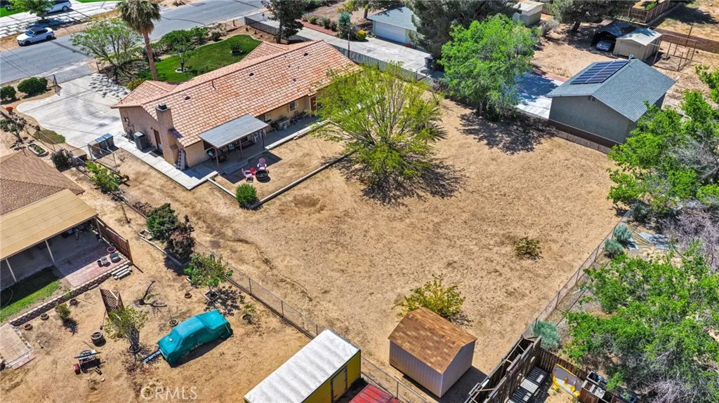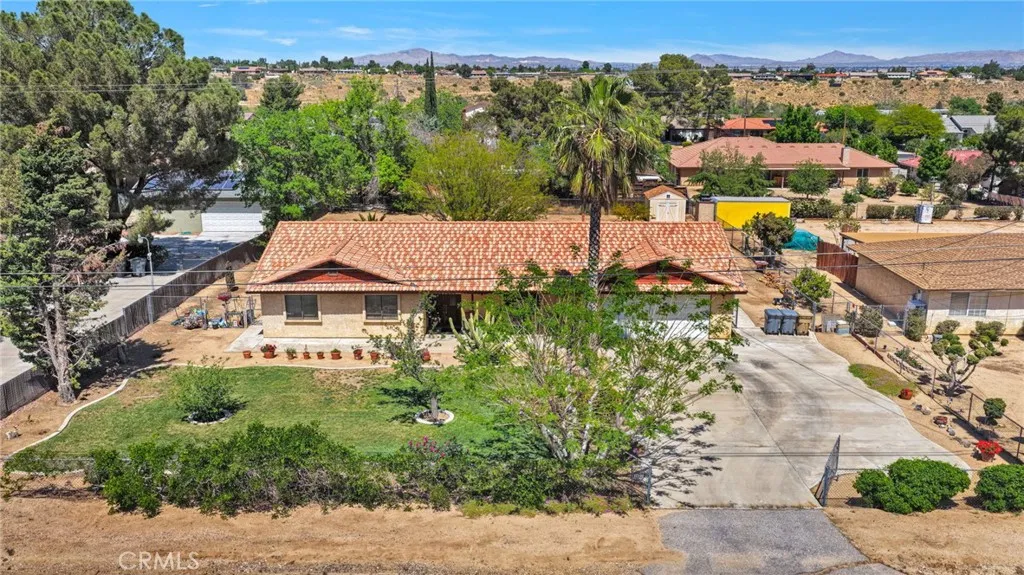 Welcome home to the Mesa — one of the High Desert's most sought-after neighborhoods, close to good schools and conveniently located for everyday living. This well-maintained gem is packed with quality upgrades and thoughtful features that truly set it apart. Step inside to an open floor plan with a bright living room, formal dining room, and a kitchen loaded with solid wood cabinetry throughout and a large walk-in pantry. The den/family room features a beautiful fireplace with a gas log lighter — swept yearly and well maintained. Gorgeous ceiling fans in every room, and yes — the popcorn ceilings are GONE. Dual pane windows, newer window coverings throughout, and fresh interior paint make this home feel clean and move-in ready. The spacious primary suite offers a walk-in closet and an on-suite bath with dual vanity. Storage galore inside and out, including a newer 10x12 ft shed with dual barn doors. The $14K top-of-the-line Train HVAC system — with all new ducting and air filtration — keeps your gas and electric bills impressively low. Also newer light fixtures throughout. The roof and plumbing have been routinely inspected and maintained. This home has been loved and cared for year after year. Outside, enjoy beautifully landscaped grounds with a sprinkler system, red plum and apple trees, roses, wisteria, Virginia creepers for front yard privacy, and lush ground cover. Covered front AND back patios, a fire pit, and a fully fenced and cross-fenced yard — with gate access to drive directly into the backyard with room for RV parking. Tile roof, fire hydrant right out front, and a 2-car garage round it out. Pool table negotiable. Make this your Home Sweet Home!