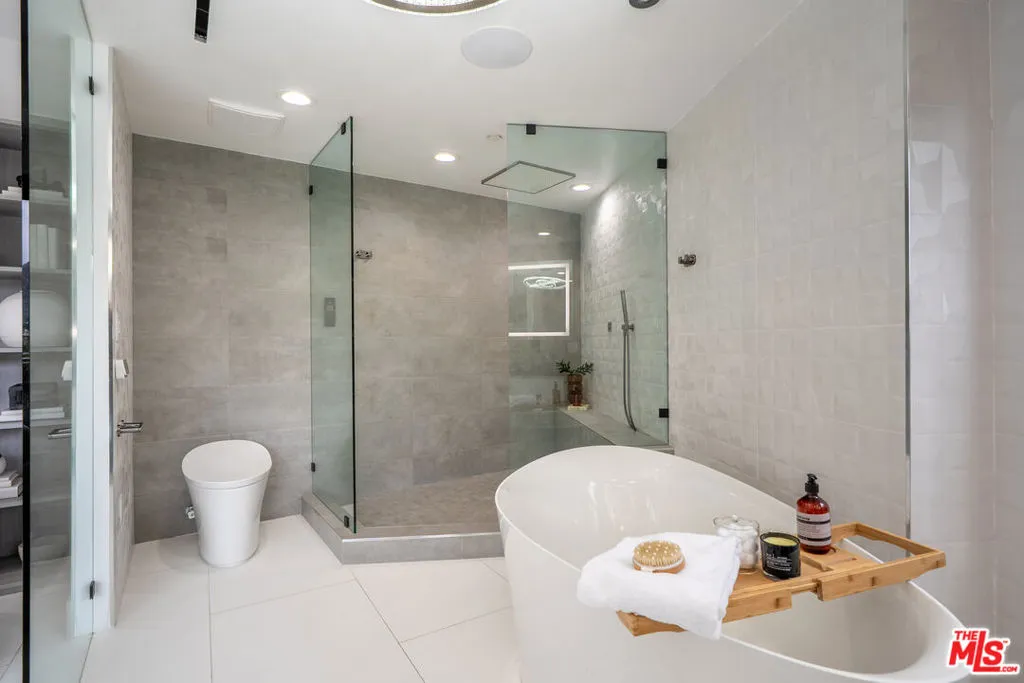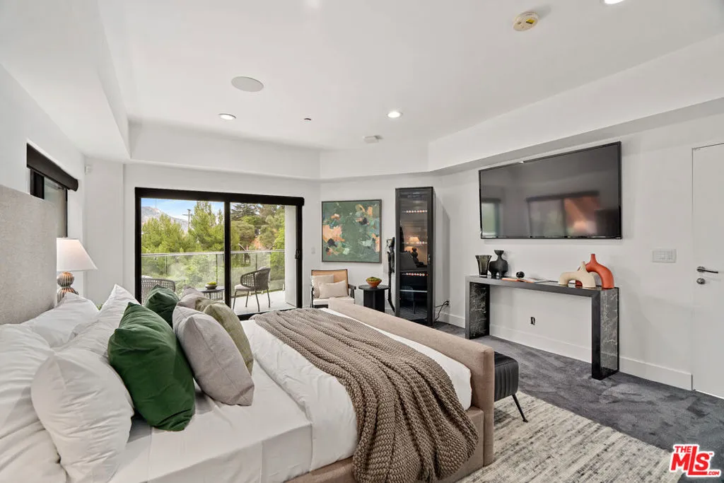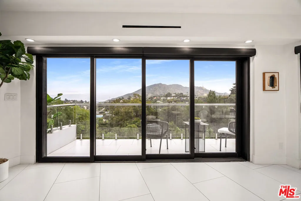 Perched above Mulholland Drive in the prestigious Hollywood Hills, this exceptional architectural residence delivers panoramic, unobstructed views of the Los Angeles skyline, surrounding mountains, and the iconic Hollywood sign with views showcased from virtually every room. Thoughtfully designed for both sophisticated entertaining and everyday comfort, the home features a seamless open-concept floor plan enhanced by expansive sliding glass doors that bathe the interiors in natural light while framing spectacular sunset vistas. The chef's kitchen is a true centerpiece, equipped with professional-grade appliances, an oversized island, and a fluid connection to the living and dining areas. The residence offers dual primary suites, each designed as a private retreat. The main primary suite features its own balcony, sitting area, custom walk-in closet, and a spa-caliber bathroom complete with a soaking tub, glass-enclosed shower, heated floors, and refined European finishes. A rare highlight is the private, usable outdoor space situated directly off the primary bedroom ideal for relaxing, entertaining, or enjoying the serene hillside setting.Modern convenience meets cutting-edge technology with a fully integrated Control4 smart home system, providing effortless control of lighting, climate, security, automatic shades, and whole-home audio. Additional amenities include mature fruit trees, a reverse osmosis system delivering purified alkaline water, and beautifully landscaped grounds that enhance the home's striking curb appeal. The property also features a two-car garage, additional driveway parking accommodating up to four vehicles, and EV charging capability. Ideally situated just minutes from Runyon Canyon, the Hollywood Bowl, and the world-renowned Sunset Strip, this residence represents a rare opportunity to own a modern luxury home in one of Los Angeles' most iconic and sought-after neighborhoods.