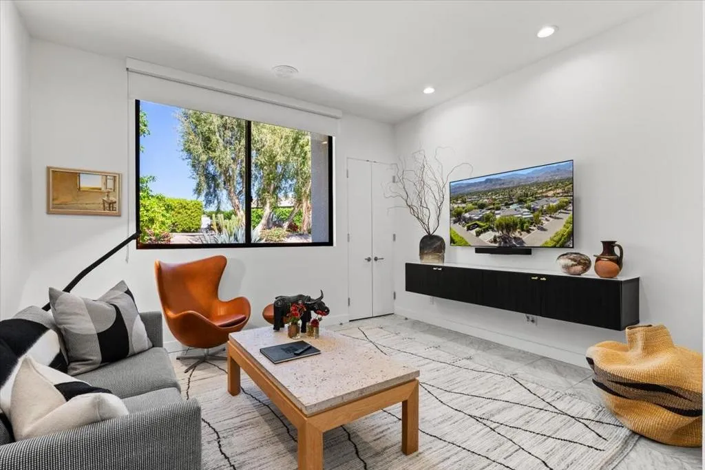 Stunning Desert Retreat with breathtaking views located in an exclusive private enclave in the prestigious city of Rancho Mirage. Welcome to this rare opportunity offering refined luxury and situated within a private gated community of just 4 homes. Spanning over 3,100 sf, the home features 3 spacious and well separated ensuite bedrooms, a powder room and a versatile bonus space for home office, fitness studio or creative retreat with adjacent bath. The open concept layout with soaring ceilings and walls of glass create an inviting and sophisticated atmosphere perfect for both everyday living and elegant entertaining. The gourmet kitchen flows seamlessly into the dining and living areas, while the expansive primary suite offers a tranquil retreat with spa-like bath, 3 generous closets and direct outdoor access. Enjoy resort-style amenities including a large lap pool with expansive lounge and entertaining space plus a private tennis court shared by just four homes; all set within beautiful and lushly landscaped grounds with a vibrant collection of citrus trees for your morning beverage or evening cocktail. Ideally located just a golf cart ride to the Tamarisk County Club or Mission Hills County Club, this home offers the ultimate in desert living with world-class golf, dining and social activities at your fingertips. This is a special chance to own a one-of-a-kind desert home combining luxury, location and views. This one is worth waiting for! Please call for more info.