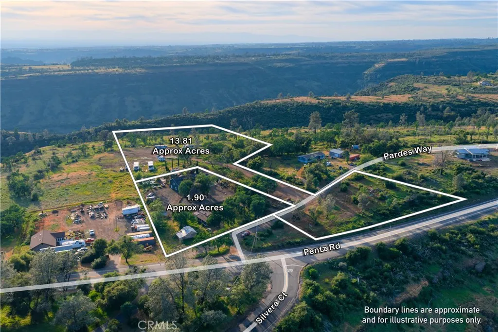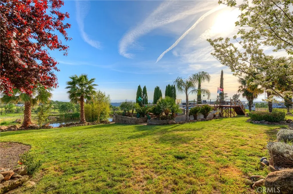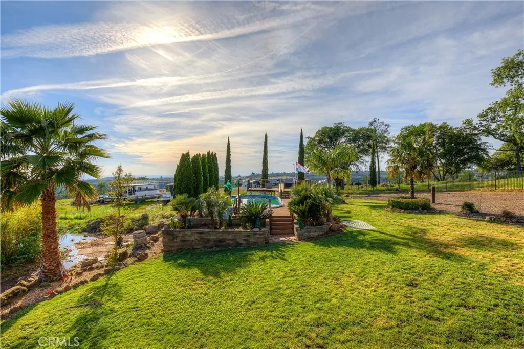 Incredible once in a lifetime estate property!! The property consists of two parcels, one is 1.9 acres with custom built home offering over 3,000 sqft with massive amount of rear decking and front decking as well. Split bedroom floor plan with primary suite to right rear of home with walk in closet, spacious bedroom and nice size bathroom. The other bedrooms and office room opposite end of the home, one is junior suite as well with additional bath servicing other bedrooms. Solid surface flooring in main areas of home with carpet in bedrooms. Large open kitchen is part of the center piece to the home with granite counters, stainless appliances, breakfast bar and dinning area over looking rear and sunsets. The center of the home is grand room adorned with columns and rock fireplace plus glass doors to rear deck off the home. There has been new stairway added with custom iron railing to carry you down to the huge game room with LVP floors, Huge flat screen TV and additional TV's for game time, professional air hockey, arcade game, and tons of room for entertaining. Huge rear deck offering sitting areas, BBQ area and in deck spa to enjoy not only the most amazing sunsets and stars galore at night. Above ground large pool with decking all around and over 14 palm trees, plus nice natural pond. Tons of landscaping done with abundant amount of outdoor lighting, massive amount of wrought iron fencing with electric gated entry as well. There is a second home on the property for passive income or extended family as well. Did I mention views and sunsets!! Holy cow the most amazing sunsets can be had here with views down Dry Creek Canyon all the way to the Sutter Buttes!! This total property is nearly 16 acres in two parcels and two separate gated entries with elec key pads, the additional 13+ acres has been leveled and cleared opening the door to many possibilities form ag to animals to storage or ?? All located two minutes from Lime Saddle Marina and Lake Oroville for the boat and water recreation enthusiasts!! Far to much to go on about, must see in person!!