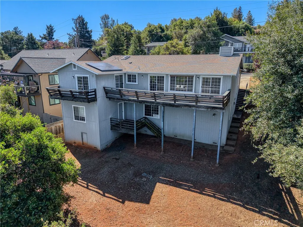 Fabulous lake views await in this spacious and versatile home designed for comfortable living and effortless entertaining. A large deck perfectly positioned to capture stunning lake vistas sets the tone, while the open, flowing floor plan and expansive windows bring in natural light and showcase the scenery throughout. A total of 5 bedrooms and 3 baths placed as follows: The main level features 3 bedrooms and 2 baths, including a serene primary suite with its own private deck. Vaulted ceilings and a charming brick fireplace highlight the living room, creating a warm and inviting atmosphere. The spacious kitchen opens seamlessly to the living area, making it ideal for gatherings. Downstairs offers incredible flexibility with a roomy family room, a second kitchen, 2 additional bedrooms, and a full bath. With its own separate exterior entrance and a private deck, this level is perfect for a potential in-law unit, guest quarters, or extended living space. Additional highlights include a large 2-car garage with direct access to the main level, a fenced backyard, easy parking, solar panels, and abundant storage throughout. An adjacent lakeview parcel is also included, providing added privacy and future possibilities. This is a rare opportunity to enjoy breathtaking views, flexible living spaces, and exceptional value all in one property.
