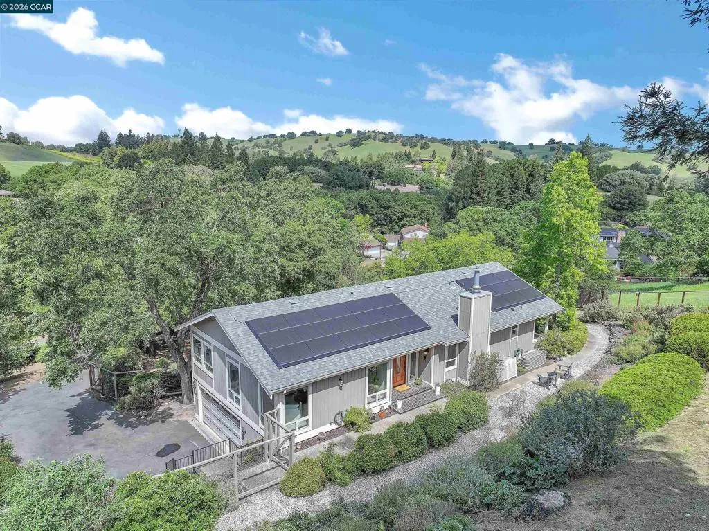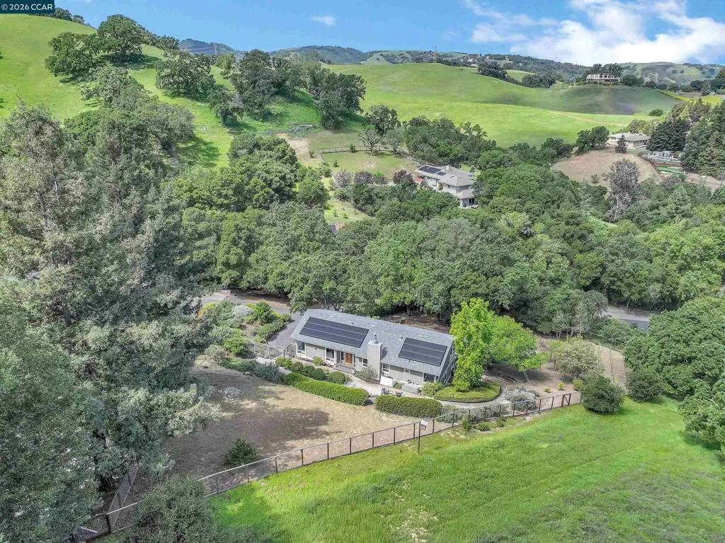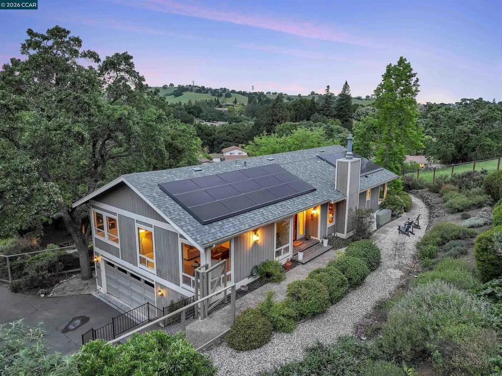 Amazing one of a kind, Nature Lover's Dream! Tucked up a Private Rd with Views of the Hills Surrounded by Oak Trees & Wild Life. Situated on almost an acre. Bordering Lafayette & Pleasant Hill. Spacious Living Room Adjoins Formal Dining Room. Updated Kitchen with Breakfast Bar filled with natural light. Kitchen boasts Granite Counter Tops, Dual Ovens, Trash Compactor, Wine Fridge & Abundant Cabinetry. Dual Pane Windows, Recessed Lighting & Newer HVAC. Family Room features a Gas Fireplace, Built in Cabinets & Wet Bar. The Stunning Primary Retreat opens up to a Deck to Enjoy the peaceful setting. Relax in the Spa like bathroom with dual vanities and a complete Wet room with Stall shower rain head and tub. Lower Level features Separate Entrance w/ 2 Bedrooms plus Family Room/bonus room or 4th Bedroom Option. Could be In-Law/Au Pair set up. Storage room in garage. OWNED SOLAR with 2 Tesla Batteries and FORD car charger. Only minutes to Equestrian Trails, Hiking Trails, Downtown Martinez or Shopping/Dining in Walnut Creek or Lafayette. Country Feel yet only close to San Francisco & Napa. Quick Access to Bart, Hwys 4, 24 & 680! Open Tuesday, 4/7 10:00-12:00 & Sunday, April 12th 1:30-4:00