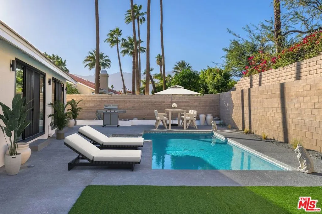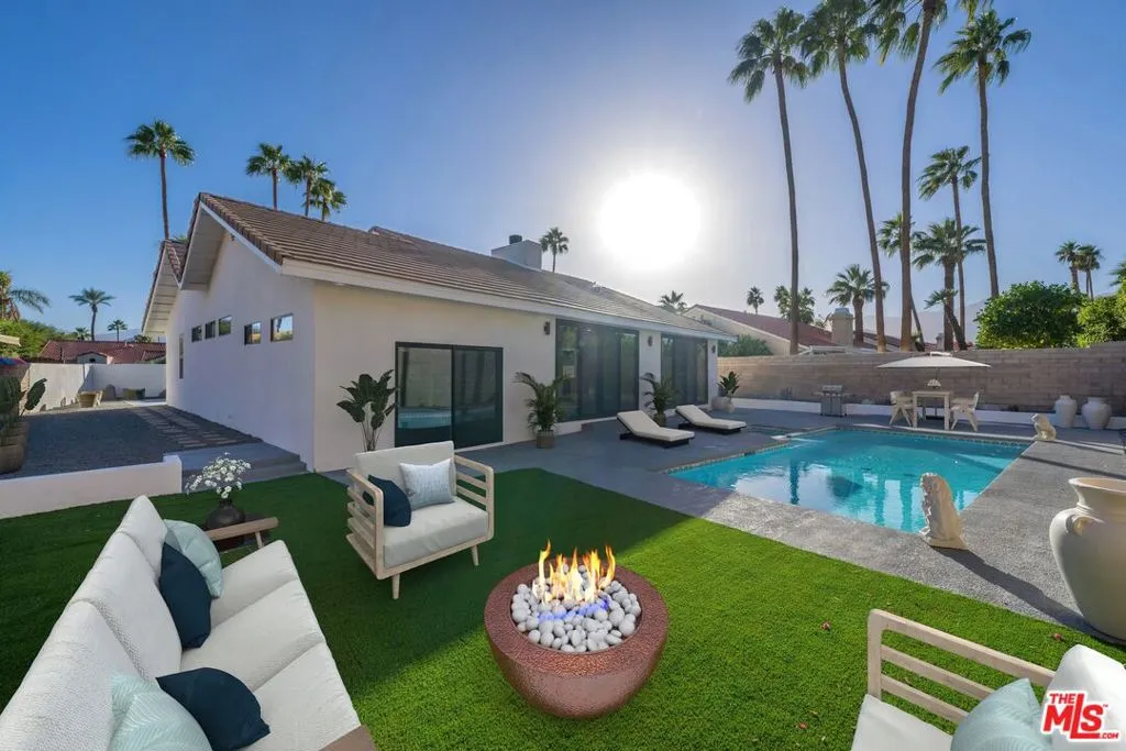 Welcome to this beautifully reimagined residence situated in the highly desirable Tamarisk neighborhood of Rancho Mirage. Set on fee land with no HOA, this exceptional property offers a rare blend of refined design, privacy, and true ownership in one of the desert's most established and sought-after enclaves. Thoughtfully remodeled with a sophisticated modern aesthetic, the home showcases soaring ceilings, expansive living spaces, and an abundance of natural light throughout. The open-concept floor plan is designed for both everyday comfort and elevated entertaining, with seamless transitions between the living, dining, and kitchen areas. Two oversized sliding glass doors create a harmonious indoor-outdoor flow, capturing the essence of luxury desert living. The backyard is a private resort-style retreat, framed by mature palm trees and lush landscaping that provide both beauty and seclusion. A recently re-plastered pool and heated spa serve as the centerpiece of the outdoor space, offering the perfect setting for entertaining guests or enjoying tranquil evenings under the desert sky. Additional upgrades include a newer dual AC system for enhanced year-round efficiency and comfort, as well as solar panels, providing long-term energy savings and sustainability benefits. The home's extensive improvements reflect a careful balance of style, functionality, and modern convenience. Ideally located just minutes from premier golf destinations including Tamarisk Country Club and Mission Hills Country Club, as well as upscale dining, shopping, and emerging developments such as Storyliving by Cotino, this property offers both immediate lifestyle appeal and long-term value potential. A rare offering that seamlessly combines modern sophistication, resort-style amenities, and a premier location without HOA restrictions in the heart of Rancho Mirage.