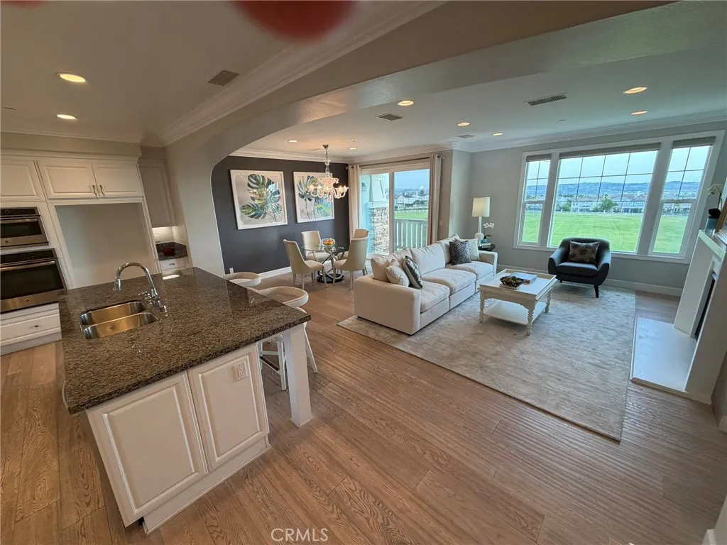 Spectacular views from this desirable townhouse located adjacent to Black Gold Golf Club. This thoughtfully designed 3-level home offers maximum privacy, with each bedroom featuring its own en-suite bath. Featuring 3 bedrooms and 3.5 bathrooms, the home is tastefully upgraded with hardwood flooring, crown molding, and custom window coverings throughout. The living room includes custom built-in cabinetry, while the gourmet kitchen boasts a center island and top-of-the-line appliances. The spacious primary suite offers a luxurious bath and a large walk-in closet. Located in the highly desirable Vista Del Verde community with amenities including pool, spa, clubhouse, and fitness center. Situated within an excellent school district.