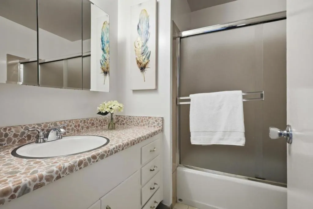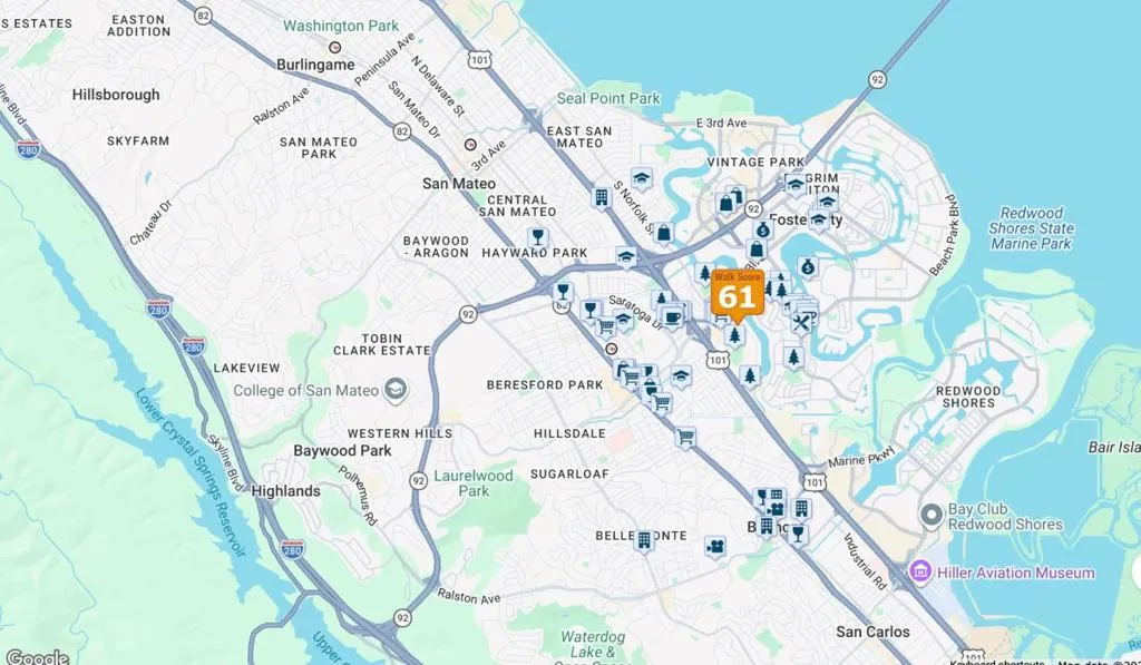 This top floor unit offers a private entrance that opens directly to a large balcony, ideal for those who prefer outdoor entry over a shared hallway. The interior is bright and airy, with oversized windows in both the kitchen and living room. The eat-in kitchen and living area are adjacent to the balcony, extending the living space and maximizing natural light. The primary bedroom includes an en-suite bathroom with a shower stall, while the hallway bathroom has a full tub. The unit was recently updated with fresh paint, new carpeting, and a new stove and refrigerator. Additional features of this home include a dedicated covered parking spot and ample street parking. Two spacious storage lockers are conveniently located next to the parking space. This property offers a functional living environment in a well-connected Peninsula neighborhood, providing close proximity to major retail hubs like Park Place Plaza and primary transit corridors, including Highways 101 and 92. This is a pet friendly community, 1 assigned parking spot, and community laundry room.