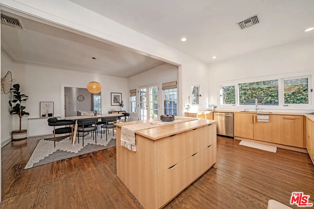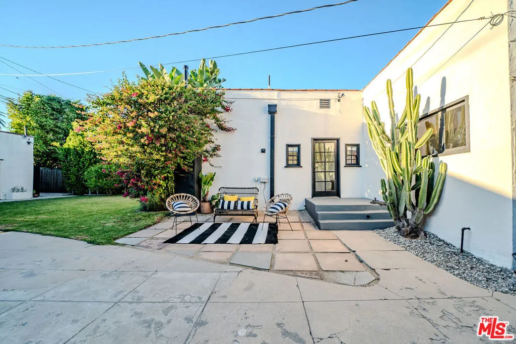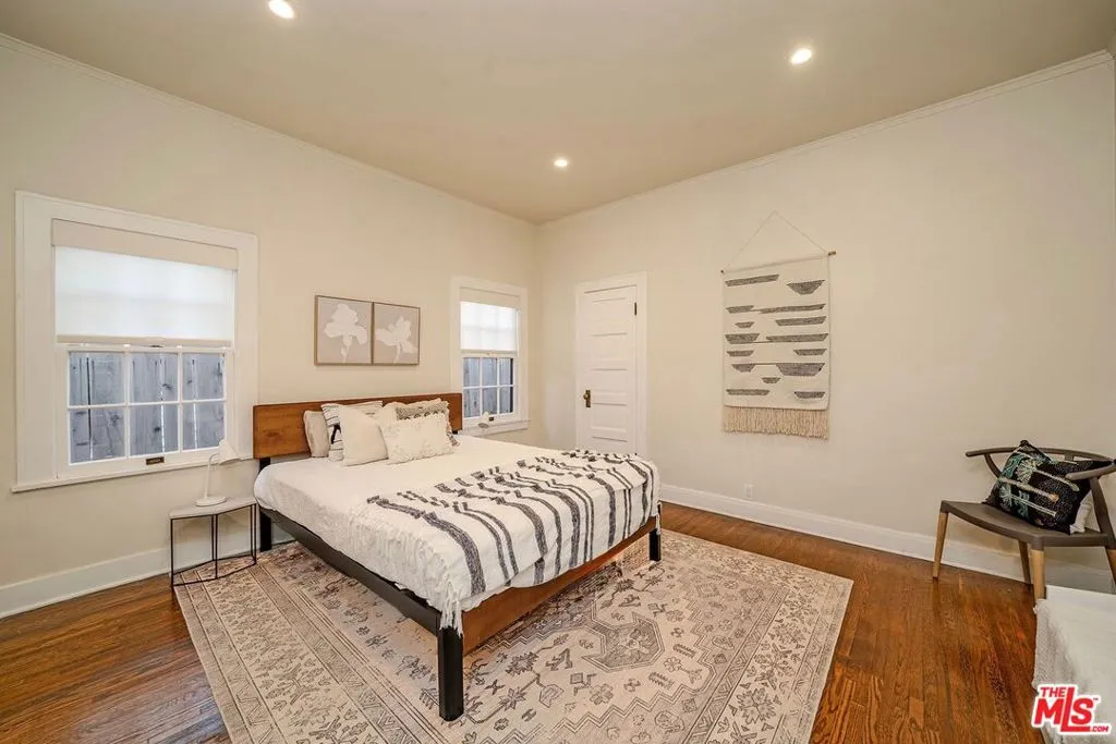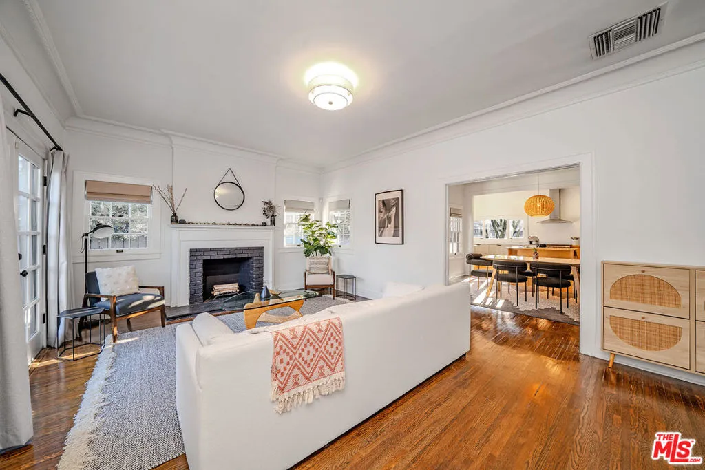 Unique opportunity to own this peaceful urban retreat in the heart of Koreatown! This 3-bedroom, 3.5-bath Spanish bungalow with a separate finished studio offers a modern reimagining while preserving its timeless classic charm. Tucked behind a private perimeter gate and surrounded by drought-tolerant landscaping, this home provides tranquility and added privacy. Inside, you'll find original oak floors, tall ceilings, detailed moldings, French doors, and plenty of natural light. The open living room flows seamlessly into the den/office (or 4th bedroom), and the formal dining room is spacious enough to entertain many guests. It leads to a large chef's kitchen with an oversized island that doubles as both a kitchen and dining area, featuring high-end appliances including a WOLF range, Fisher & Paykel refrigerator, and custom cabinetry. The primary suite offers a spa-inspired bath, while both additional bedrooms provide ample space. Outside, the expansive backyard is a true oasis, combining lush grassy areas, mature banana palms, and vibrant bougainvillea, offering plenty of room for both play and relaxation. Behind the main residence, a beautifully finished studio can serve as a guest suite, creative space, or recreation room. The newly renovated garage includes custom storage, adding more utility. Conveniently located near Larchmont and Hancock Park, with easy access to all of LA's amenities and attractions. Don't miss out, come see this property before it's gone!