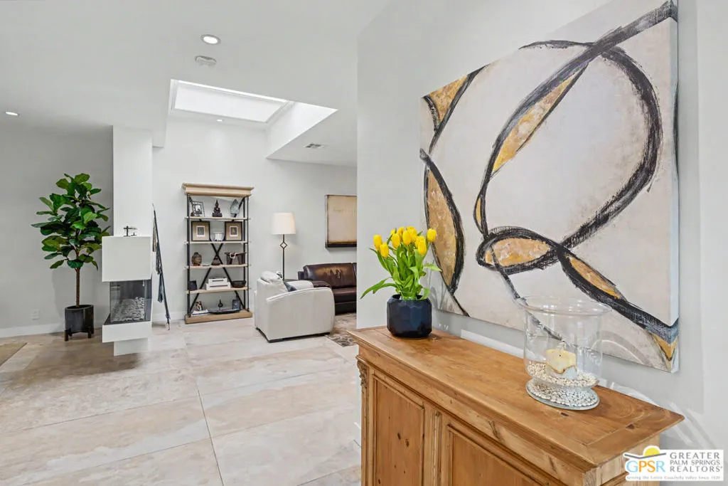 Experience the Pinnacle of Sophistication in Central Palm Springs! Welcome to your dream oasis in Palm Regency, where luxury meets modern elegance. This fully renovated home is a masterpiece, offering every detail meticulously crafted with a discerning eye. Custom cabinetry, high-end finishes, and soaring ceilings evoke a sense of grandeur. The floating fireplace serves as a stunning focal point, seamlessly separating the expansive living and dining areas perfect for entertaining guests or enjoying cozy evenings at home. Step outside to your private wrap-around patio, where breathtaking views of Mt. San Jacinto await. Imagine sipping your morning coffee beside the tranquil waterfall fountain, or gathering around the fire pit as the sun sets behind the mountains. The open floor plan enhances indoor-outdoor living, with sliders leading to the patio from multiple points throughout the home. Whether you envision a formal dining room, a dedicated media space, or a cozy retreat, the possibilities are limited only by your imagination. Centrally located and just a stroll away from downtown Palm Springs, this sophisticated home boasts a chef's kitchen equipped with upscale appliances, custom countertops, and ample space for culinary adventures. Dual primary suites offer luxurious retreats, each with abundant closets and lavish baths that rival five-star hotels. The stunning powder room features exquisite tile work and a spacious shower, ensuring that every guest experiences indulgence. With tall privacy walls enveloping the oversized patio and a two-car garage with direct access to the living space, this home combines immense privacy with convenience. Pour yourself a cocktail, bask in the views, and embrace the lifestyle you've always dreamed of!