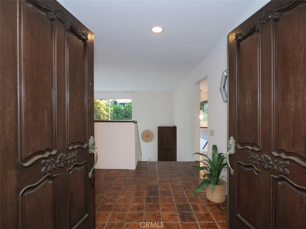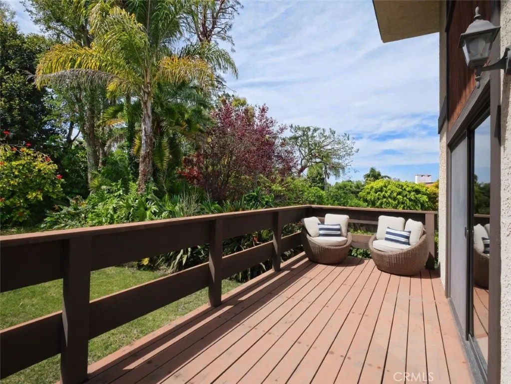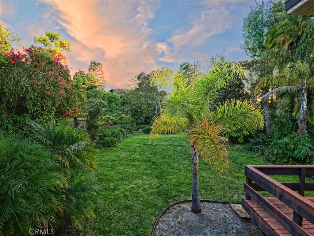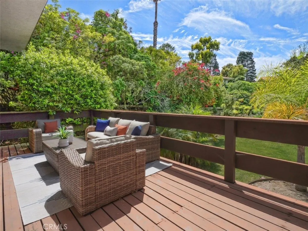Welcome to this spacious and inviting 4-bedroom, 4-bath home offering 3,242 square feet of living space on a generous 13,740 square foot lot, ideally situated on a quiet street in the sought-after Montemalaga neighborhood of Palos Verdes Estates. Enjoy the convenience of being within walking distance to the award-winning Montemalaga Elementary School. Set back from the street and surrounded by mature trees, this home welcomes you through a double-door entry into a light-filled interior highlighted by dramatic two-story windows in the living room, showcasing serene views of the expansive grassy backyard. The Main Level features the Primary Suite, overlooking the backyard and offering multiple closets with mirrored doors. The en-suite bathroom includes dual sinks, a separate shower, and a soaking tub, accented by original cobalt blue tile from the home’s 1977 construction—full of vintage charm. This level also provides direct access to the oversized two-car Garage, a Powder Room, Formal Dining Room, and a Kitchen with Breakfast Bar, casual dining area, and sliding doors leading to a peaceful wood Deck nestled among the trees. A half-flight down leads to the Living Room with a Fireplace and soaring ceilings, opening to a large Deck ideal for relaxing or entertaining while enjoying the lush backyard with grass and fruit trees. Another half-flight down reveals an impressive Family Room featuring a floor-to-ceiling brick Fireplace and sliding doors to yet another Deck overlooking the yard, three additional bedrooms, two bathrooms (one with a shower, one with a tub/shower), and a Laundry area. Through the downstairs bathroom is a hidden bonus—an expansive unfinished Basement space with endless possibilities, whether envisioned as a media room, game room, gym, or additional storage. While the home is ready for updates, it offers tremendous potential to create your dream space. With its size, location, and opportunity, this is a rare chance to own in one of the Peninsula’s most desirable neighborhoods.