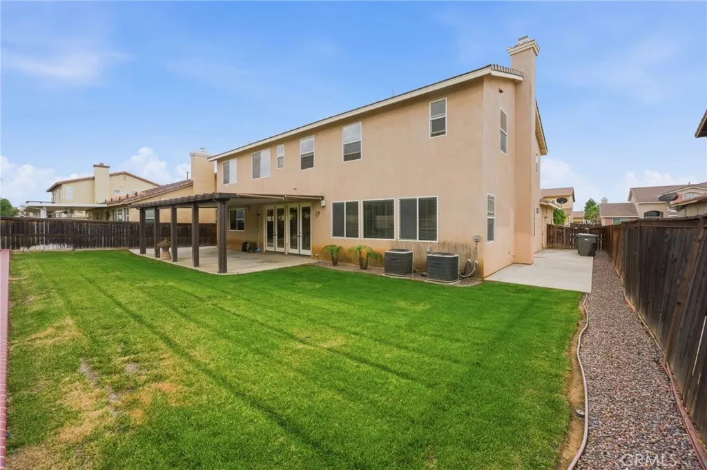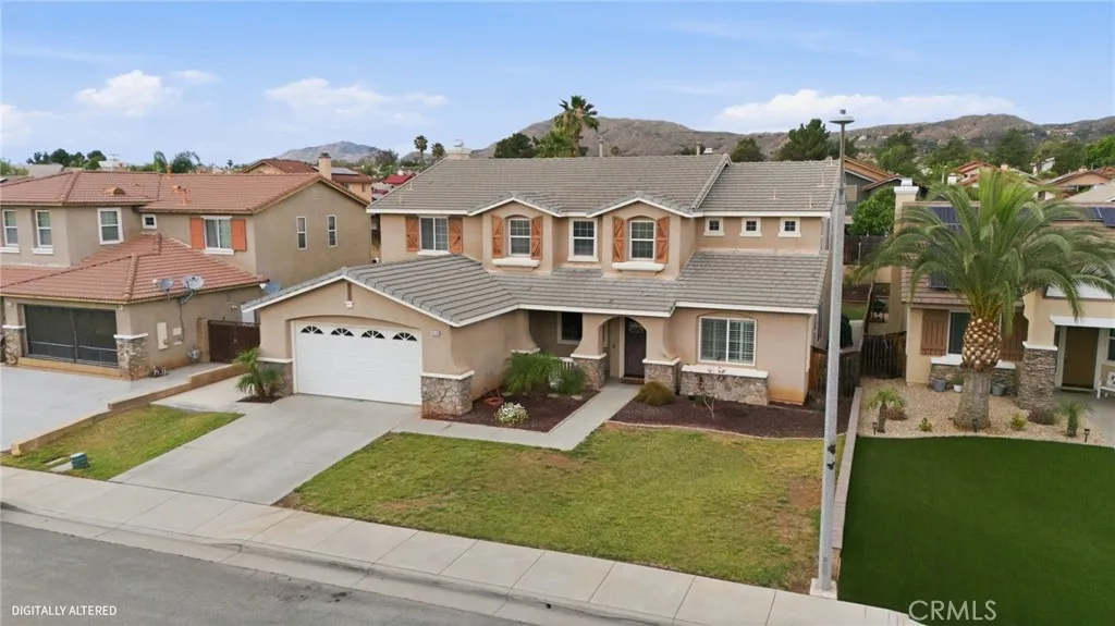 Welcome to 26458 Aldertree Court, ideally situated in a prime Moreno Valley location close to top local conveniences. Enjoy easy access to nearby public schools, Morrison Park, the new BMX park, Stonebridge Shopping Center, and the 60 Freeway—perfect for those seeking a connected, on-the-go lifestyle. Tucked away in a quiet cul-de-sac with no HOA, this beautifully maintained home offers both privacy and flexibility. Spanning approximately 3,931 sq ft on a 8,276 sq ft lot, this spacious two-story residence features 5 bedrooms and 4.5 bathrooms, with every bedroom offering its own attached bathroom—ideal for comfort, privacy, and multi-generational living and a 3 car tandem garage. The inviting open floor plan showcases multiple versatile living spaces that can be used as a formal dining area, home office, or sitting room. The expansive kitchen is designed for both function and style, featuring a large center island, breakfast bar seating, granite countertops, abundant cabinetry, and a butler’s area with a large walk-in pantry, all opening to the oversized family room complete with a built-in shelving unit and a stunning fireplace with decorative gas rocks. Updated extra-tall double French patio doors bring in natural light and create a seamless transition to the backyard. Downstairs includes a junior suite with its own private bathroom and walk-in closet. Throughout the home, enjoy tile flooring, recessed lighting, plantation shutters, and neutral paint tones. Upstairs, an expansive loft offers the perfect bonus space for a second living area, playroom, or gym. Two bedrooms share a Jack and Jill bathroom, while an additional junior suite offers its own private bath. The primary suite serves as a true retreat with dual sinks, an extra-deep soaking tub, privacy plantation shutters, and a mirrored closet door, while additional bedrooms feature mirrored closet doors or walk-in closets. The backyard is designed for relaxation and play, offering an extra-large concrete patio with a covered area and a spacious grass area perfect for kids, pets, or entertaining. A rare opportunity to own a gorgeous, spacious, well-appointed home in a highly convenient location.