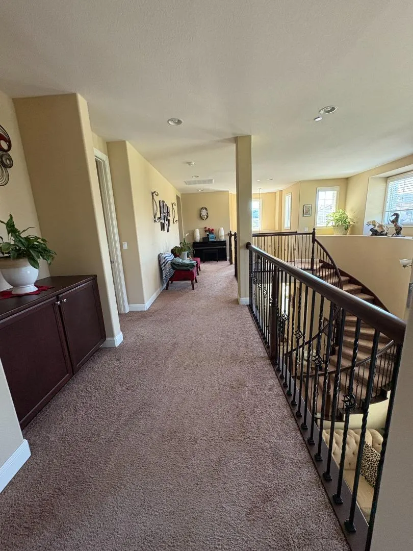 Situated in Dublin, this spacious 6-bedroom, 5-bath home offers 4,015 sq ft of living space featuring a kitchen-family room combo with granite countertops, gas cooktop, and ample appliances including microwave, oven range, refrigerator, dishwasher, and hood over the range. The family room includes a gas starter fireplace, creating a cozy atmosphere. Flooring is predominantly carpet throughout the residence. The home includes a ground floor bedroom and multiple bedrooms on the ground floor. Bathrooms feature granite and marble finishes, with the primary bath boasting an oversized tub. Laundry area is equipped with gas hookup and washer/dryer. Additional features include central AC, central forced air gas heating, high ceilings, and ceiling insulation. The property is part of the Dublin Unified elementary school district and includes a two-car garage. Dining options include a breakfast bar, dining area, and dining space in the family room.