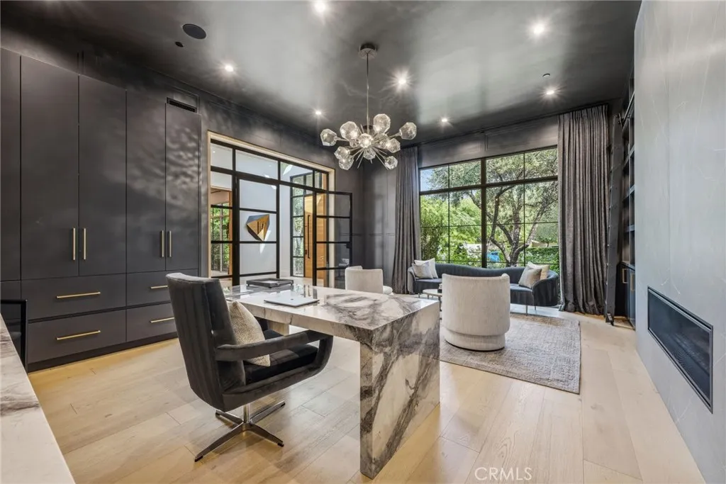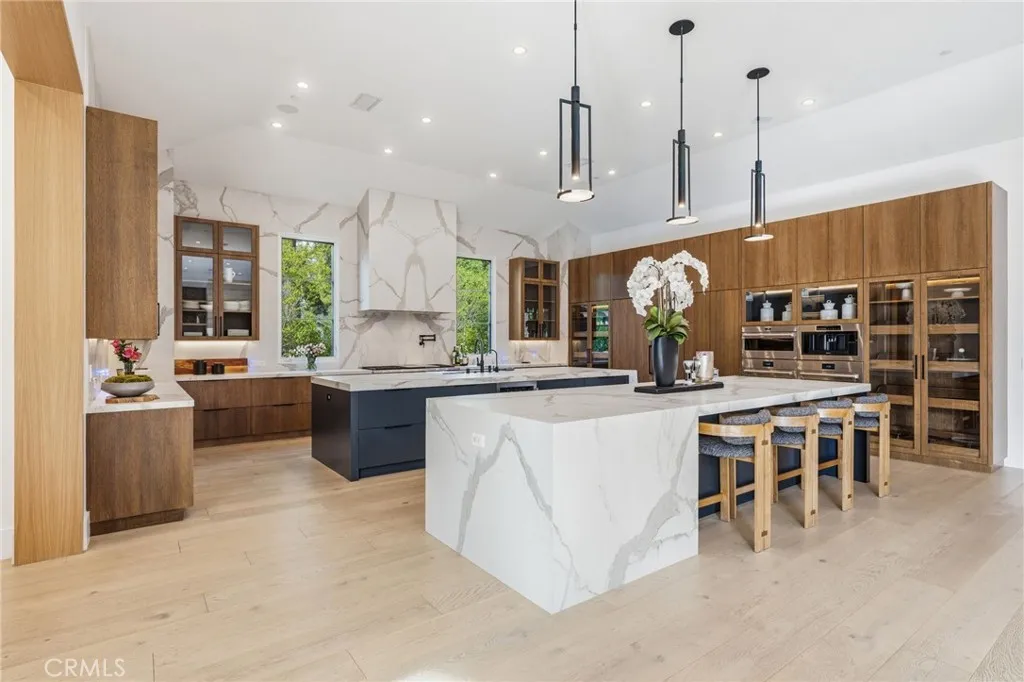 Welcome to this meticulously crafted single-story designer estate set within the prestigious guard-gated enclave of Hidden Hills, where timeless elegance meets modern sophistication. Impeccably curated with elevated finishes and thoughtful design throughout, this exceptional residence offers a seamless blend of luxury, comfort, and refined living. Designed for both grand entertaining and everyday ease, the open-concept layout is defined by soaring ceilings, wide-plank flooring, and walls of glass that flood the interiors with natural light. A formal dining room with a striking custom wine display creates a dramatic yet inviting setting, while the state-of-the-art media room delivers an elevated cinematic experience. The chef’s kitchen serves as the heart of the home, featuring top-tier appliances, bespoke cabinetry, expansive dual islands, and a generously sized walk-in pantry balancing beauty with exceptional functionality. The living spaces transition effortlessly to the outdoors, embracing the quintessential California indoor-outdoor lifestyle. A private casita-style suite, discreetly positioned above the main residence, offers a tranquil and secluded retreat ideal for guests, extended family, or a refined office space. Complementing the estate is a detached one-bedroom ADU complete with a dedicated gym, providing versatility for wellness, guest accommodations, or independent living. The primary suite is a true sanctuary, highlighted by a one-of-a-kind dual island walk-in closet and a spa-inspired bath designed to evoke a five-star resort experience. Indulge in luxurious finishes, a soaking tub, an expansive shower, and a calming ambiance curated for ultimate relaxation. Set within one of Los Angeles’ most exclusive communities, known for its privacy, security, and equestrian lifestyle, this extraordinary residence represents a rare offering where design, quality, and lifestyle converge at the highest level.