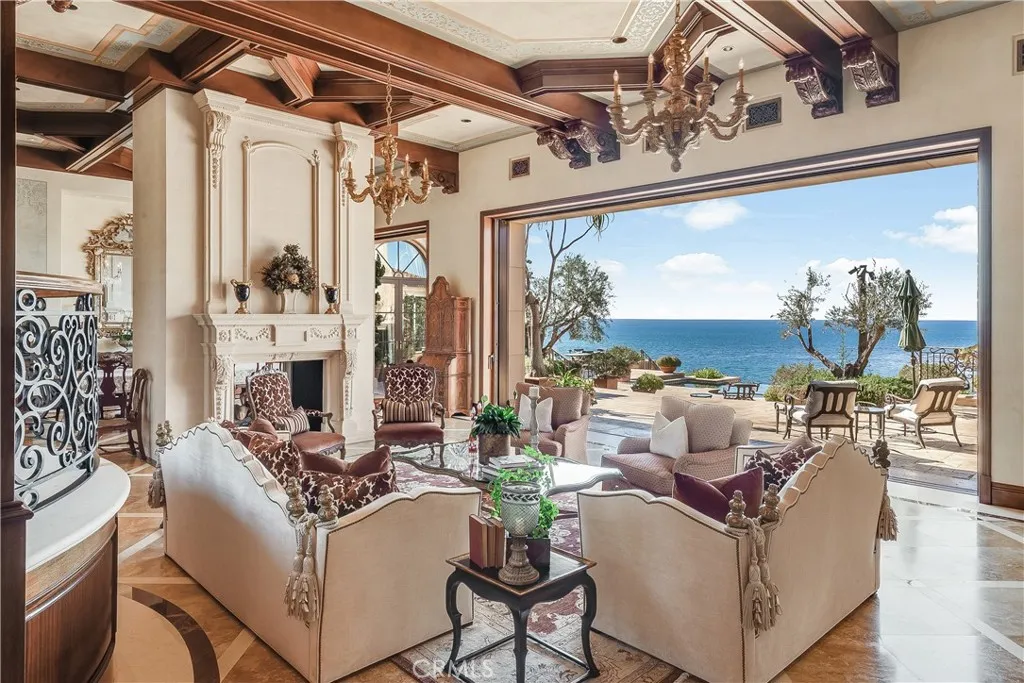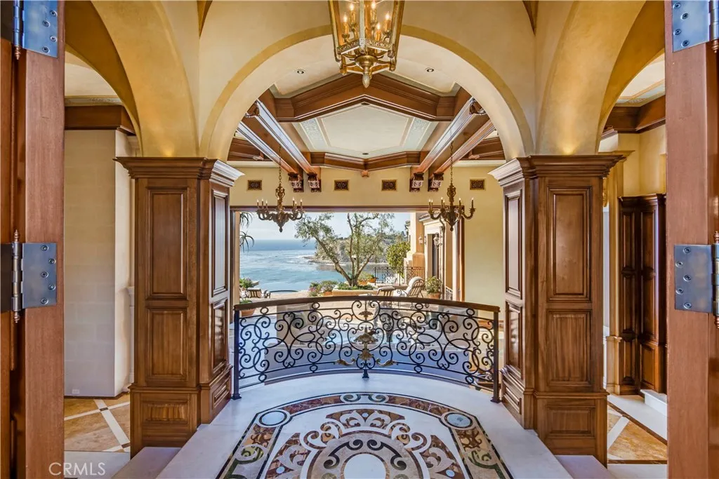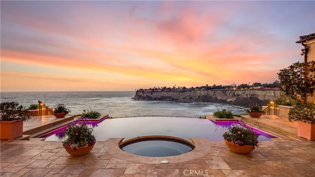 Spectacular, Rare, and Majestic! A once-in-a lifetime estate that welcomes you to the coastline of Palos Verdes Estates, overlooking Lunada Bay at Resort Point and the Pacific Ocean. A masterful design with meticulous details highlights this Italian-inspired Mediterranean Villa. Custom built, the property's elegant yet comfortable design focuses on indoor/outdoor living rivaling many 5-star resorts and showcasing the stunning surf, sunset and coastline views from all major living spaces. The heart of the home is the stunning living room anchored with a majestic floor to ceiling dual fireplace and accented with disappearing sliding doors that open to a breathtaking infinity pool and spa that flow seamlessly to the ocean. The open floor-plan is ideal for entertaining and offers a wonderfully themed Monkey Bar complete with refrigerator and sink. A media room just off the kitchen offers a cozy environment for family movie night. The expansive rec room is perfect for arcade gaming, video entertainment, and shooting pool, with an adjacent wine cellar. The stunning kitchen includes an expansive butlers pantry and prep area. The Primary Suite is the highlight of the bedroom wing with a unique glass floor entry overlooking a Koi pond. This luxurious suite includes whitewater views, dual fireplace, sitting area, expansive walk-in closet and spa-style bathroom with jetted tub and a walk in oversized shower. The outdoor setting is unrivaled and awe-inspiring and takes you to another world while relaxing on the beautifully landscaped patio with an inviting pool and the soundscape of the rhythmic waves below. The final touches of this spectacular estate are a secluded gym/sauna room, an oversized garage for the car enthusiast with ample storage, and an automated gated entrance. A truly private and grand world class oceanfront estate.