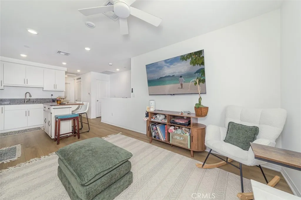 Located in the desirable master-planned community of Highgrove Town Center, this thoughtfully designed townhome offers flexibility and a modern layout. This 1-year-old home offers 1 bedroom and a full bathroom upstairs, plus a downstairs flex room with a full bathroom, providing the option for a 2nd bedroom, home office, guest room, or additional living area. The second floor features a layout in which the kitchen, Great Room, and dining nook connect seamlessly, creating a welcoming setting for everyday living. The upper level also includes a laundry area. ADDITIONAL HIGHLIGHTS: upgraded wood-look vinyl flooring, granite kitchen countertops, stainless steel appliances, recessed lighting, ceiling fans, and plantation shutters. The enclosed front patio provides an inviting outdoor setting, ideal for relaxing or entertaining. The property also includes 1 attached garage. Residents enjoy access to community amenities such as a clubhouse, swimming pool, barbecue areas, tot lot, and more. Situated just minutes from UC Riverside, the VA Hospital, local schools, shopping, and dining. Outdoor enthusiasts will appreciate nearby Box Springs Mountain Reserve, offering trails for hiking, mountain biking, and horseback riding. Downtown Riverside and the historic Mission Inn are approximately a 10-minute drive.