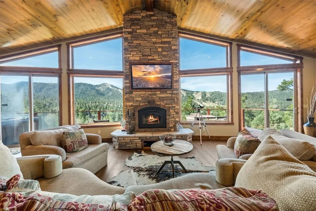 SPECTACULAR SKI SLOPE VIEWS!!!!!! Experience breathtaking, up-close ski slope views that truly make you feel like you can reach out and touch the runs. Enjoy panoramic views from multiple areas throughout the home, filling the space with natural light while preserving that warm mountain cabin feel. Convenient level parking and easy entry welcome you into a spacious open floor plan featuring soaring vaulted T&G wood ceilings, rich wood accents, and expansive windows designed to showcase the incredible scenery. The chef’s kitchen is a standout, complete with high-end custom soft-close cabinetry, a massive center island, and plenty of space to cook and entertain—all while taking in the stunning views. On the main level, you’ll find: Expansive decking perfect for soaking in the scenery, an impressive floor-to-ceiling rock fireplace, a primary bedroom suite, a powder room, a functional mudroom with abundant storage. The lower level is built for entertainment and comfort, featuring: A spacious game room with ski slope views and its own fireplace, a wet bar area with access to a view-filled lower deck, direct access to a large backyard, dedicated co-working space, an ensuite bedroom plus two additional bedrooms with a shared bath, a versatile storage room .This home truly has it all—views, space, and mountain charm. Don’t miss this rare opportunity!
