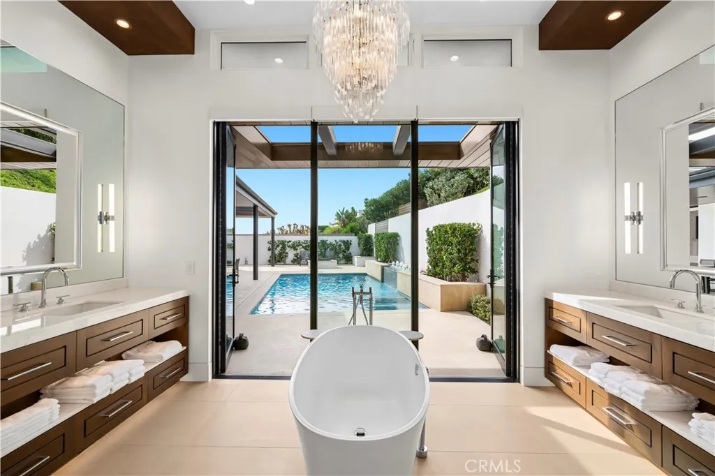 Light does not simply enter this home; it resides within it. Glass is not merely a material but a philosophy of design that shapes perspective and dissolves the boundary between structure and nature. Nearly every room opens outward, revealing terraces, the pool, and the coastal community that defines Irvine Terrace. Originally envisioned by Brandon Architects, this approximately 3,871-square-foot fully furnished residence has undergone a refresh of remarkable completeness. A dramatic stone accent wall flows seamlessly from the exterior into the foyer, enhanced by skylights and thoughtfully designed awnings that fill the space with natural light. The living, dining, and kitchen areas flow together as one vast, luminous space framed by retractable glass walls that erase the distinction between indoors and outdoors. Beyond, the newly resurfaced pool is embraced by a private hillside that offers serenity and seclusion for entertaining. A secondary primary suite captures ocean views that embody the enduring allure of Corona del Mar. Technology and refinement converge through radiant heated floors and a bespoke Control4 system. Every detail reflects precision and purpose. The result is architecture that moves in harmony with its surroundings, a home conceived for those who live with intent and appreciate the perfection of modern coastal living. A rare vision. An extraordinary execution.