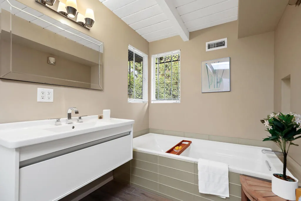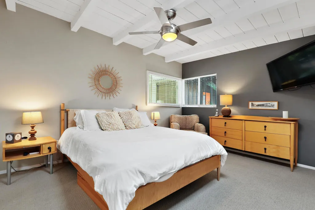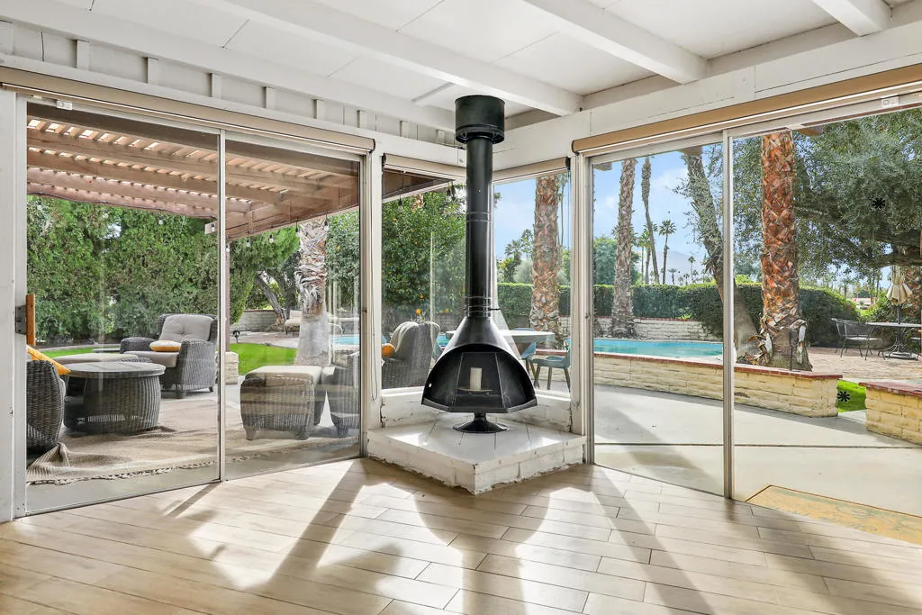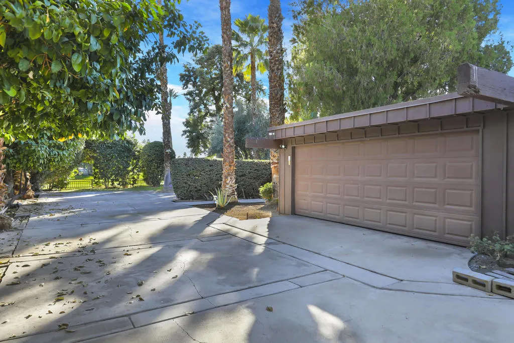 A rare opportunity to own the only single-family residence in Monterey Country Club, offering a level of privacy and space that is simply unmatched within the community. This ranch-style, single-story home sits on nearly 1/2 acre, ideally positioned on a premier south-facing lot with sweeping golf course, lake, and Santa Rosa mountain views.Designed for seamless indoor-outdoor living, the home is filled with natural light thanks to expansive windows and walls of glass that frame the surrounding landscape. The open-concept layout connects the main living areas, creating an inviting space for both everyday living and entertaining. Architectural details, vaulted ceilings, and a statement fireplace add warmth and character throughout.The kitchen has been thoughtfully updated with clean finishes, stainless appliances, and a functional layout that opens to the living and dining areas. Multiple sliding doors lead to private outdoor spaces, including a resort-style pool, mature landscaping, and expansive patios--all set against a backdrop of fairways, water features, and mountain views.Exceptionally private, this property offers a true retreat feel while still being within one of Palm Desert's most centrally located and desirable communities. Flexible living spaces provide options for guests, a home office, or additional lounging areas.Offered turnkey furnished per inventory, this is a move-in-ready opportunity for a full-time residence or seasonal escape.Monterey Country Club features golf, tennis, pickleball, fitness, and a prime location just minutes from El Paseo shopping and dining. The HOA provides a convenient, low-maintenance lifestyle.Truly one-of-a-kind--there is nothing else like it in Monterey Country Club.
