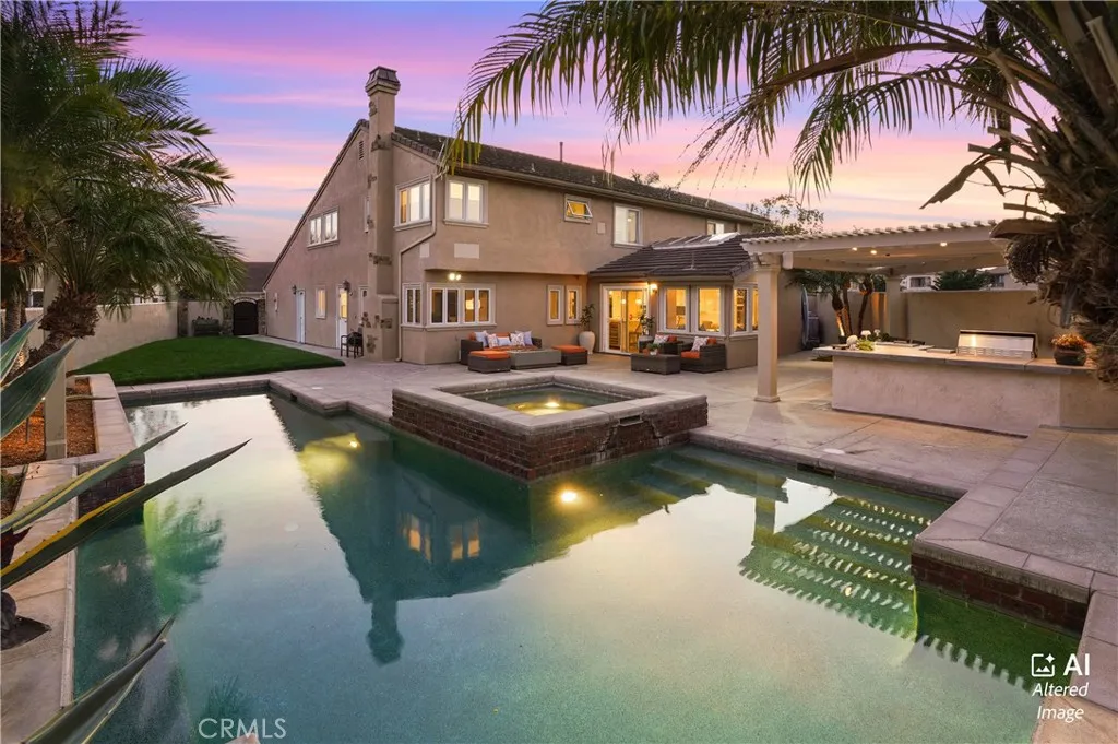 Welcome to a rare luxury opportunity ideally situated on a quiet cul-de-sac steps from the Bolsa Chica Wetlands with direct access to scenic trails leading to the beach. Set on an oversized lot with no neighbors behind, the backyard is designed for ultimate privacy and entertaining, This backyard is like having your own private resort which includes a stunning pool with oversized jacuzzi. built-in BBQ area, patio with bar seating, outdoor speakers, outdoor shower, and a large grass side yard great for kids or pets. There is an additional patio area through the living room french doors, separate from the rest of the backyard. Inside, this home features real wood flooring, abundant natural light enhanced by skylights, and two gas fireplaces creating warm, inviting living spaces. This residence offers the highly sought-after main floor bedroom and full bath, perfect for multigenerational living or guests. The chef’s kitchen is a true centerpiece, showcasing quartz countertops, a large island with bar seating, double ovens, walk-in pantry, pull-out coffee station, wine fridge, and a separate beverage center, blending functionality with modern luxury. Upstairs, the expansive primary suite offers a private retreat with a massive walk-in closet outfitted with custom California Closet cabinetry and a spa-inspired en-suite bath featuring dual vanities. Additional highlights include a dual-zone climate control, separate laundry room with sink and a 3-car garage with epoxy flooring and built-in cabinetry. This is Southern California coastal living at its finest.