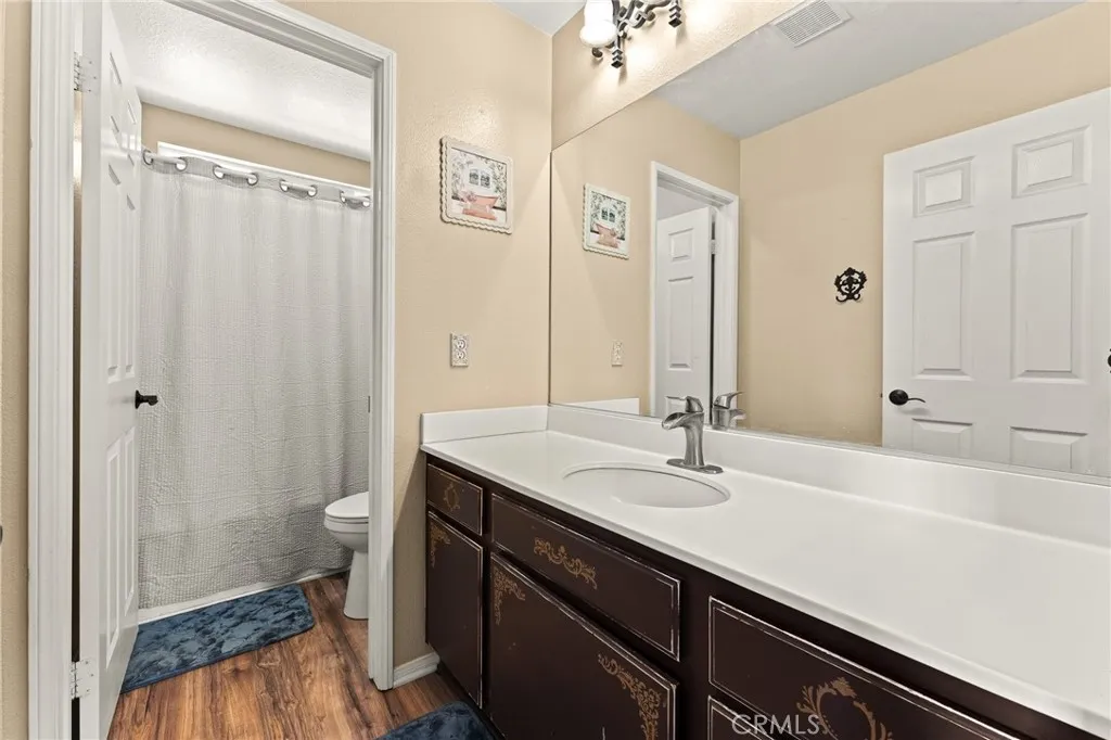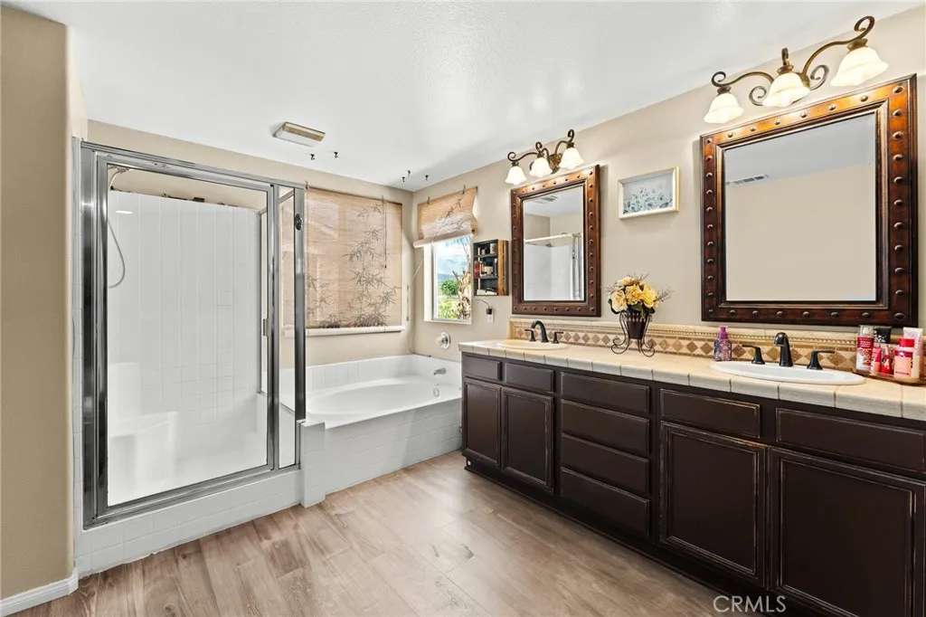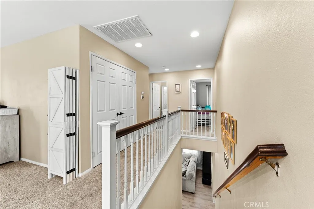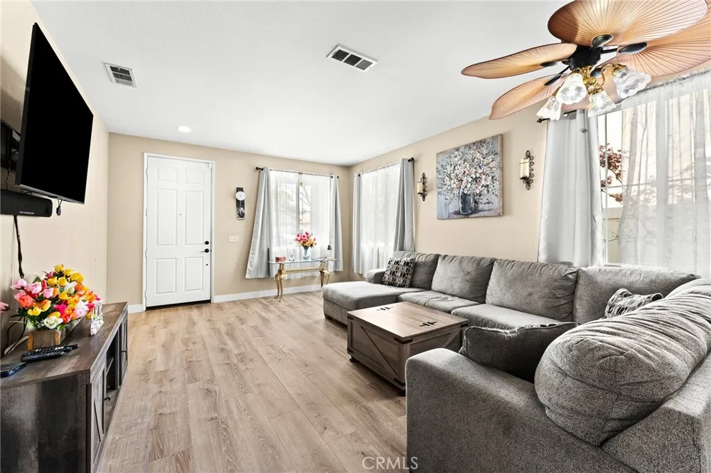 Located in a family friendly Beaumont neighborhood surrounded by scenic mountain views, this well-maintained 5-bedroom, 3-bath home offers over 2,300 sq ft of functional living space. Turnkey and move-in ready, this home offers a spacious layout ideal for everyday living and entertaining. As you enter the home, you’re welcomed into the living room filled with abundance of natural light, and upgraded LVP flooring throughout, with carpet in select areas for added comfort. The kitchen opens to the dining area and features a large kitchen island, tiled countertops, and a stylish backsplash, along with recessed lighting. The dining area is highlighted by a cozy fireplace, creating a warm space for gatherings. A downstairs bedroom and full bath provide flexibility for guests or multi-generational living! Upstairs offers a spacious loft that can be used as a second living area, office, or game room. All bedrooms are generously sized, including the primary suite, which features French doors, a private bathroom with dual sinks, and a separate toilet area. Step outside to a spacious backyard with a large concrete pad, built-in brick fire pit, hardscape, and a combination of block wall and vinyl fencing. There are mature palm trees and low-maintenance landscaping creating a private, relaxed setting with room to entertain or customize. The backyard backs directly to San Gorgonio Middle School, offering added convenience and no rear neighbors. Conveniently located near local schools, parks, shopping, and with easy access to the freeway. No HOA and no solar, offering added flexibility and lower monthly costs. Schedule your private showing today.