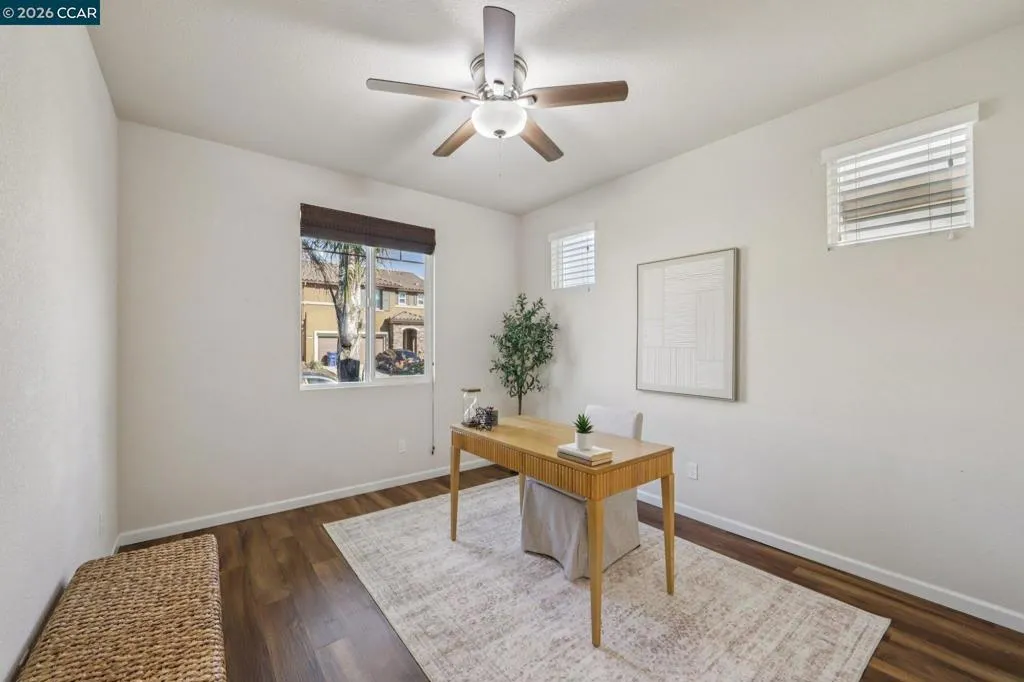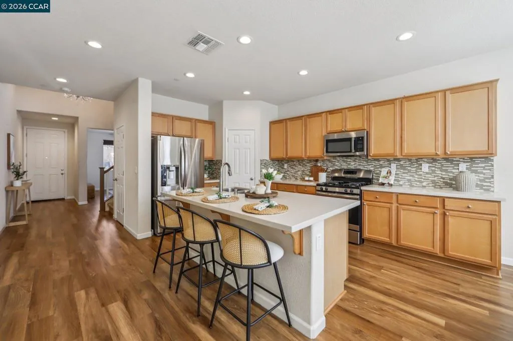 Charming east-facing two-story home in desirable Emerson Ranch, featuring 4 bedrooms, 2.5 baths, and a spacious, functional layout. Upstairs offers a large primary suite with a generous bathroom and walk-in closet, a convenient laundry room, and a huge loft—perfect for a media room, office, or play space. The open-concept kitchen flows seamlessly into the expansive family/great room, creating an ideal setting for everyday living and entertaining. Enjoy a low-maintenance, beautifully landscaped backyard with a covered patio—perfect for relaxing or hosting on warm summer evenings. Additional highlights include a spacious 2-car garage and a prime location close to parks, top-rated schools, and convenient commute access.