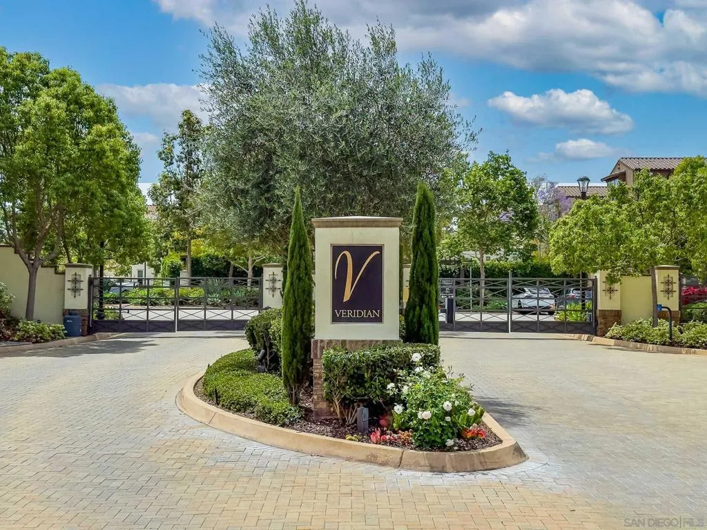 Welcome to Veridian — this is the one you've been waiting for! Rarely available 4 bed, 3 bath, 2,554 sq ft floor plan with a full bed and bath on the first floor — perfect for guests or multi-gen living. Grandfathered NEM 2.0 financed solar. Enjoy east-facing sunrise views, engineered hardwood floors downstairs, LVP upstairs, a 2-car garage with EV plug-in capability, and a prime end-of-community location for ultimate privacy. Resort-style amenities include a pool and dog park, all within a gated community in the highly desirable Poway Unified School District.