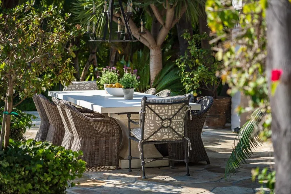 Situated on one of the most coveted addresses in The Covenant directly across from the Rancho Santa Fe Golf Course, this is a unique and truly generational estate. Fully gated on nearly three pristine, usable acres, the property unfolds as a private compound of uncommon scale, land, and serenity. A long, gracious entry driveway sets the tone before the residence comes into view, quietly revealing a stunning, sprawling residence. The single-level main house is designed for effortless, refined living and thoughtfully laid out for natural flow between beautifully appointed interiors and the extraordinary grounds beyond. A separate two-story guest house with its own private access and full amenities adds a dimension of flexibility, with options to be configured as a private retreat within the estate, a multigenerational residence, a full fitness and recreation facility, or extended-stay accommodations for family and guests. The grounds themselves are extraordinary, curated with the intention and execution of a private resort. Lush tropical landscaping, a sparkling pool and spa, outdoor kitchen and fireplace, and an abundance of patios and gathering spaces set the scene for both intimate evenings and grand-scale entertaining, while two golf practice ranges, multiple putting greens, a sports court, a turf volleyball court and an expansive flat lawn area speak to a lifestyle of leisure and play. A greenhouse, raised garden planters and a chicken coop also provide the pleasure of living off the land. This home truly must be seen to experience all it has to offer!
