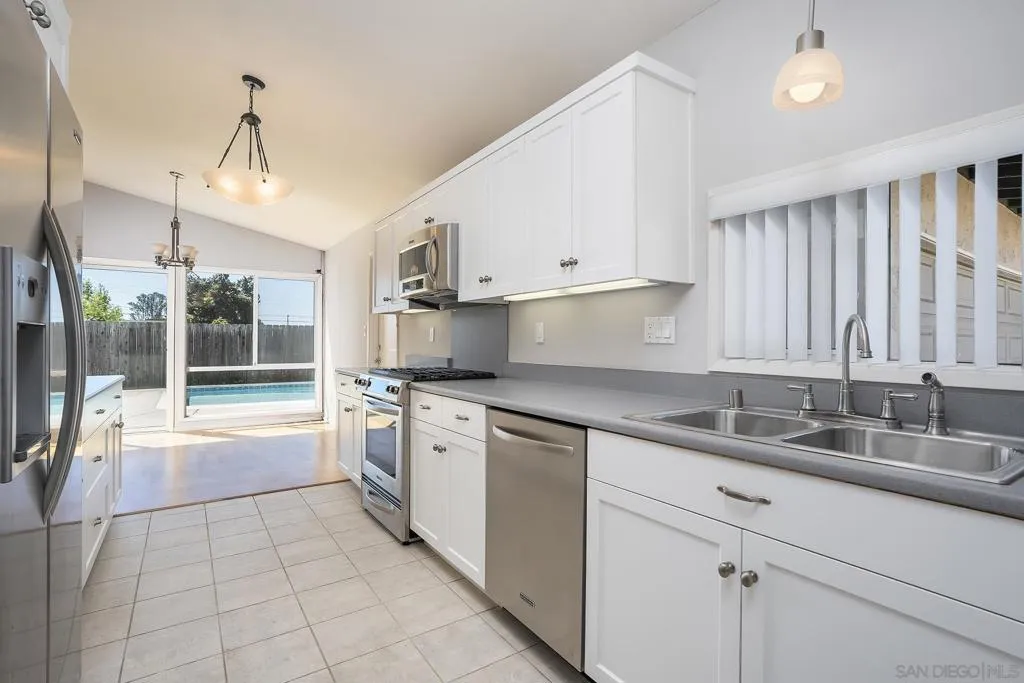Located in the highly sought-after Mount Streets of Clairemont Mesa, this 4-bedroom, 2-bath home offers a functional layout and indoor-outdoor living ideal for San Diego. The home features an upgraded galley-style kitchen equipped with gas cooking and stainless steel appliances and updated dual paned windows and slider. Four well-proportioned bedrooms provide flexibility for family, guests, or a home office. Step outside to a private backyard highlighted by an in-ground saltwater pool with brand new plaster, perfect for entertaining or enjoying warm San Diego days. Additional features include a 2-car attached garage and a convenient central location close to shopping, dining, and major freeways